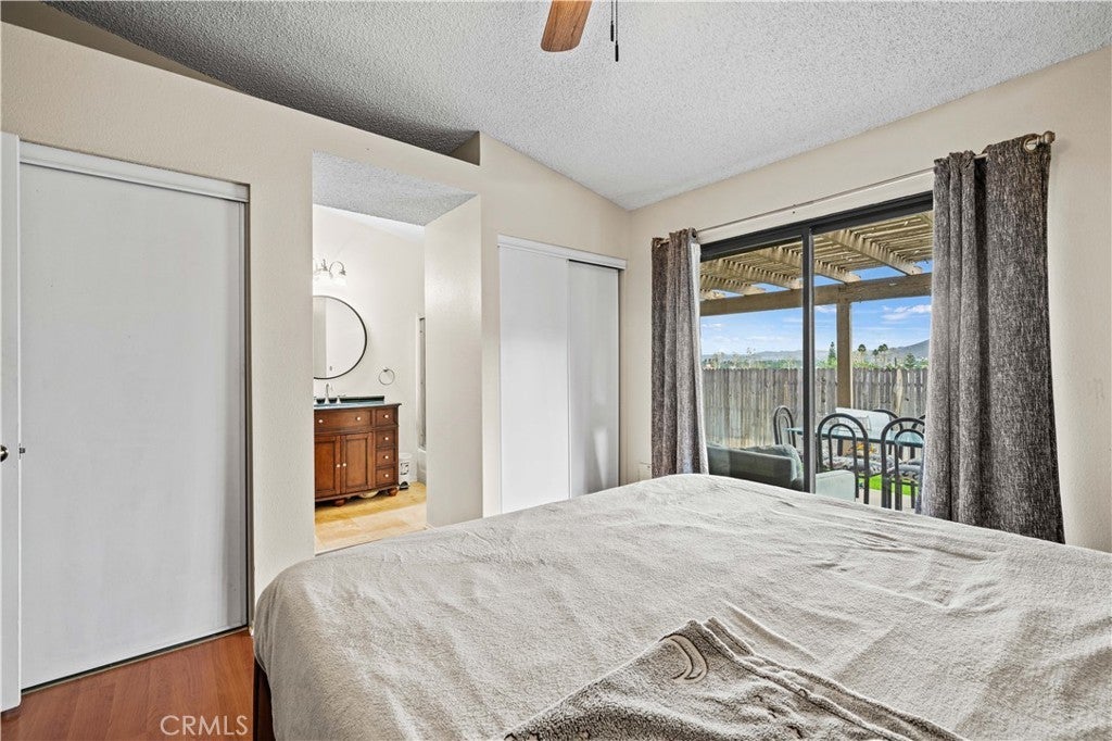 Move-in ready, a single-story SFR under $600K with great curb appeal in a beautiful neighborhood that exemplifies Prive of Ownership. This 2 Bedroom – 2 Bath home offers an open floorplan, custom paint and wood laminated flooring throughout. updated kitchen features white cabinetry, gorgeous granite countertops, stainless steel appliances and IS opened to the dining area. The living room has vaulted ceilings with skylights and a brick fireplace. Both bedrooms are large and have ceiling fans, and the primary bedroom has a sliding door to the backyard, 2 closets, and a private bathroom. Enjoy the fully fenced-in, private backyard with beautiful views of the foothills, and a built-in pergola to relax under. You will have 2-car garage with a full-size driveway and plenty of visitors parking spots in the community. It is conveniently located near schools, shopping and dining, and easy access to the 91 and 15 Freeways. A great, affordable starting home or an excellent home to retire into.