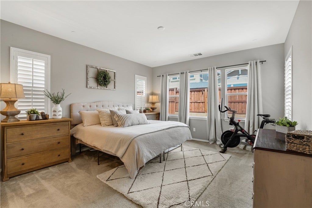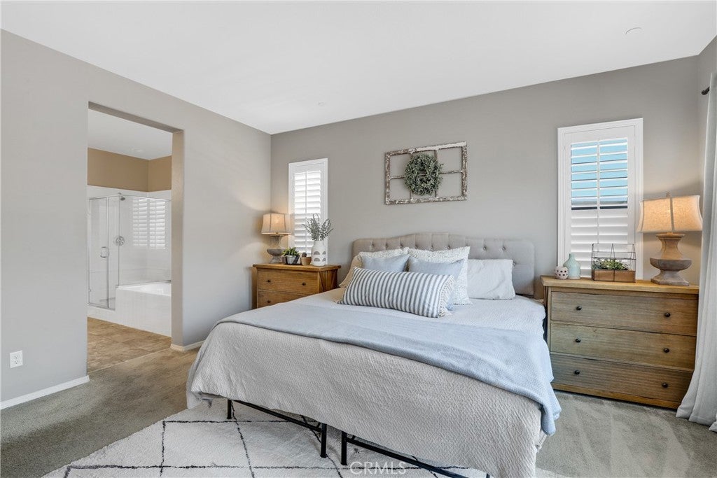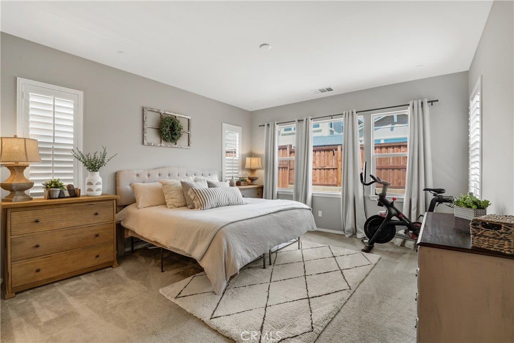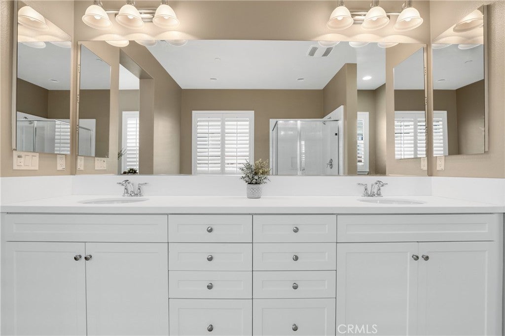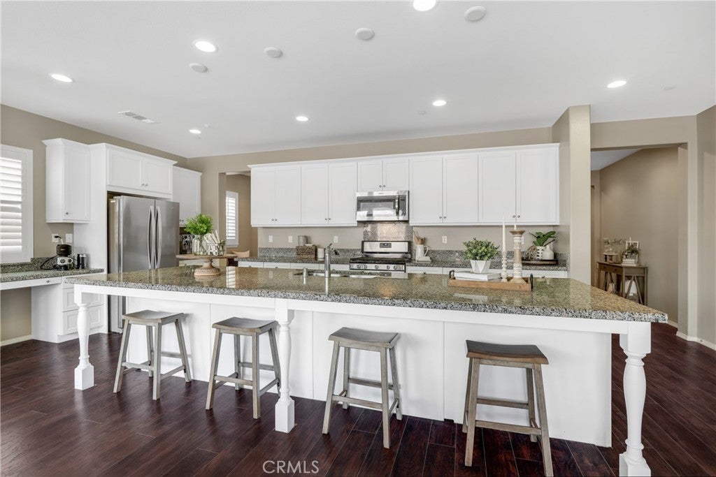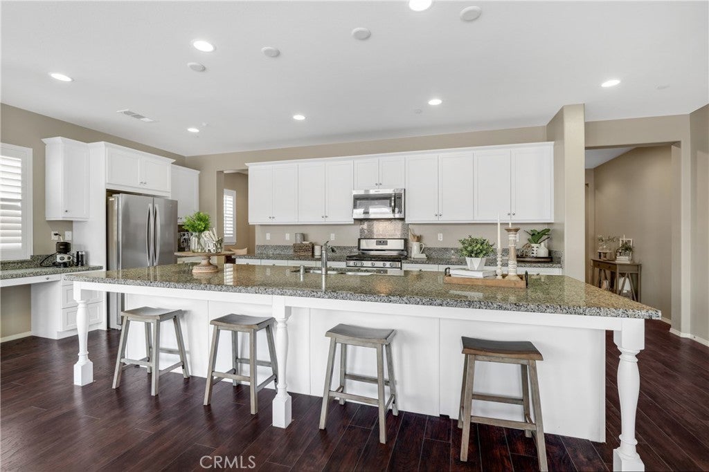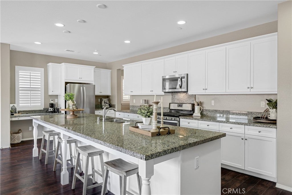 Highly sought-after single level home, ideally located in the prestigious and highly desirable Heritage Lake community, offering the best in resort-like living. The manicured drought resistant landscaping and Spanish influenced stacked stone entry creates a stunning first impression. Step inside and soak in the light filled interior with gorgeous wood laminate floors, a neutral palette, plantation shutters, and recessed lighting throughout the well-designed open concept floor plan, all providing an ideal living environment. The living area is a welcoming gathering space around the fireplace, perfect for relaxing with loved ones. The ample dining space has sliders opening to the back yard patio, a superb indoor-outdoor living area for entertaining. The expansive kitchen is a dream with Granite countertops, timeless White Shaker cabinetry, stainless-steel appliances, prized coffee bar/workspace, and abundance of countertop and storage space, and a huge center island with breakfast bar. The Primary Suite is a peaceful retreat with a roomy primary with gorgeous tile flooring, Quartz topped dual vanity, soaking tub, and oversized step in shower. Two spacious guest bedrooms and a sparkling guest bath complete this superb floor plan. The backyard is a tranquil oasis with easy care landscaping. Additional fine features include a tankless water heater and a convenient indoor laundry room. Just a short walk to Heritage Lake, Heritage Lake Park and local schools. Residents enjoy resort-style amenities including a 7,000 sq. ft. clubhouse, access to a private 25-acre lake for catch-and-release fishing and paddle boating, junior Olympic pool, splash pad, and abundance of walking trails and paths, sports courts, multiple parks, and a new sports park. Plus, you’re within walking distance of top-rated elementary and middle schools. Close to shopping, dining and 215 frwy. Just minutes from Lake Elsinore and French Valley.