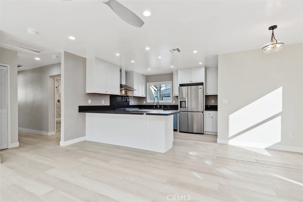Turnkey Gem! Single Story 3 Bedroom, 3 Bath, pool home located on a quiet corner lot with complete remodel from roof to flooring! All new electrical, Pex piping, new roof, new flooring, new baths, new kitchen and newly plastered pool. Enter into an open concept living/family area complete with in-wall electric fireplace, eating area and entertainers kitchen with a 9 foot quartz counter peninsula. The kitchen also has new cabinets, new high end Frigidaire stainless steel appliances, pot filler at the stove, steel sink, disposal, and reverse osmosis water system. All 3 bathrooms have new vanities, fixtures, toilets, tiled showers/bath and LED lit mirrors. New paint and tile/vinyl plank flooring throughout. New quiet AC/heat pump system with attic condenser, new ducting, attic electric fan with thermostat. Fully upgraded electrical system with new electrical panel, 220V outlets (garage EV charger + stove) and new electrical outlets and switches. Enjoy time in the backyard with 9ft deep pool complete with new heater, filters, and gas fire pit for those cool evenings. Security system includes exterior cameras, window and door alarms around pool access, doorbell camera. Exterior upgrades include a new 30 year roof, new sprinkler system, exterior lighting, spanish style tile porch, and new front door. Conveniently located near CSLB, shopping and entertainment, and nearby freeway access. So many features that you have to see to believe!