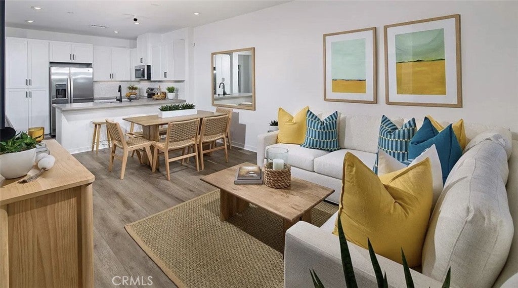 We invite you to Canopy, Risewell Homes newest townhome community. Featuring NO MELLO ROOS and nestled within an "off-the-beaten-path" location that's still so accessible to the I10, 210 and I15 corridors, ONT INT airport, Toyota Arena, Victoria Gardens, and myriad other shopping/dining/entertainment options. A designer-curated interior package with LVP/tile flooring, Quartz counters, plus washer/dryer/fridge will make this home truly turnkey once construction is completed. Home highlights include an interior location in proximity to upcoming central park, a fenced front courtyard, deeper two car garage with storage niche, and open great room/kitchen/dining at second floor, bookended by a Bed/Bath and Deck. Once further upstairs find a sizeable Primary Suite opposite another secondary Bed and ensuite Bath, as well as laundry closet. Builder incentives available, estimated MOVE IN of February.