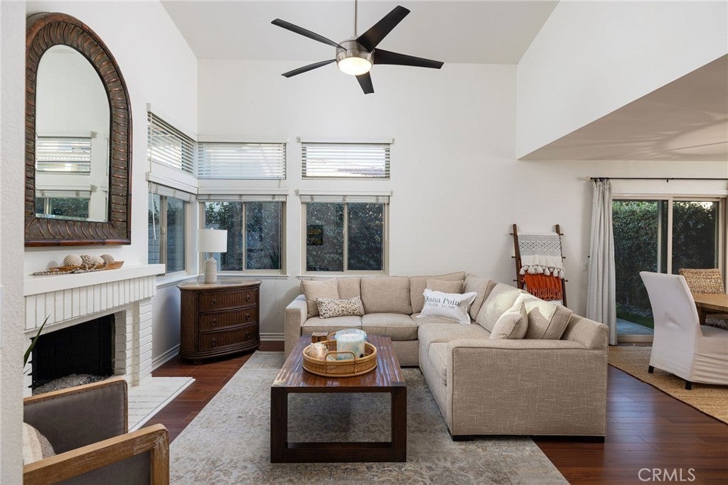 The best of Dana Point living! This former model home in Seaside Villas offers a prime location just minutes from Dana Point Harbor, Doheny State Beach, and local shops. The ideal end-unit sits adjacent to a large grass community open space, with guest parking nearby and convenient access to community amenities. A generous driveway welcomes you home to an extended two-car garage with extra storage, and entry gates open into a private patio courtyard. Inside, the light and airy layout begins with a formal living room featuring vaulted ceilings and a fireplace. The open plan flows into your formal dining space, and sliding doors extend to a private backyard enclosed by plant-lined walls. The kitchen is appointed with quartz counters, Shaker cabinets, stainless steel appliances, and a breakfast bar that opens to the family room, where additional sliding doors connect to the courtyard for easy indoor-outdoor living. The lower level is complete with a powder bath and a laundry/mudroom with LG washer and dryer and exterior patio access. Upstairs, all three bedrooms and two full baths are located on the same level. The primary bedroom includes vaulted ceilings and an updated en-suite bath with a chic tiled shower. Ceiling fans are installed in each room for everyday comfort, and storage is abundant with built-in cabinets upstairs, under the stairs, and in the garage. Recent upgrades include a new furnace and air conditioning, complete double pane window replacement, new water heater, and new hot water recirculating pump. The Sea Villas community features two pools, two spas, a clubhouse, and a BBQ area. This sought-after location is less than a mile from Doheny State Beach and Dana Point Harbor, and is close to the San Juan Creek Beach Trail, local transportation, and top-rated Capistrano Unified schools. Offering the perfect balance of a private sanctuary and vibrant beach-town energy, this home unlocks a coveted Dana Point lifestyle.