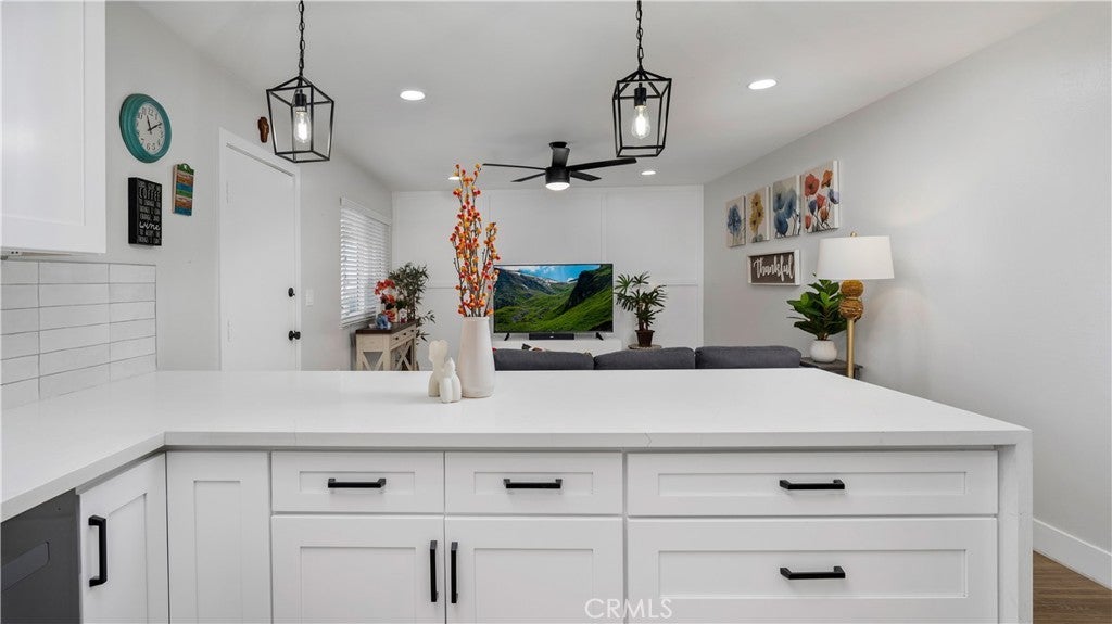 • Interior FeaturesBreakfast Bar, Ceiling Fan(s), Recessed Lighting, All Bedrooms Down, Bedroom on Main Level, Main Level Primary, Quartz Counters