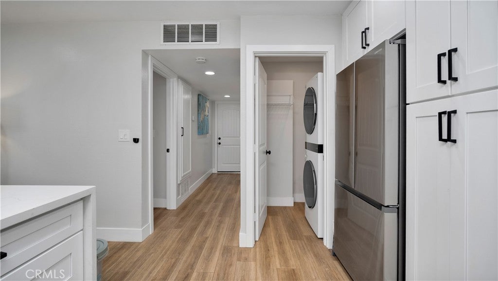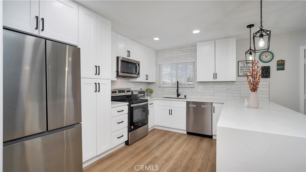 Welcome to 27061 Sun City Blvd a beautifully reimagined retreat designed for comfort, style, and effortless living in the heart of Sun City’s premier 55+ community. Step into a space where every detail has been thoughtfully curated, offering over $50,000 in high-end upgrades and a serene atmosphere. As you enter, the home immediately welcomes you with its bright, open layout and warm modern finishes. The brand-new waterproof oak-tone laminate flooring flows throughout, adding both elegance and practicality. The fully redesigned kitchen stands as the centerpiece of the home, enhanced with expanded soft-closing white shaker cabinetry, premium stainless steel appliances, including a dishwasher, and a gorgeous combination of oversized subway tile and waterfall quartz countertops. It’s the perfect space to cook, entertain, or simply enjoy your morning coffee. The living room offers comfort and style with recessed lighting, a designer board-and-batten accent wall, and a large picture window framing the peaceful association garden, inviting you to slow down and savor the moment. The spacious bedroom feels like a true retreat, complete with a sliding door that opens to your private patio, ideal for relaxing outdoors, gardening, or enjoying the quiet evening breeze. The beautifully updated bathroom features a floor-to-ceiling tiled shower with a built-in niche and an elegant accent wall, creating a spa-like experience every day. The converted carport now a private garage adds convenience, secure parking, and additional storage space with a lockable closet. Living in the Sun City Civic Association means enjoying resort-style amenities designed for active adults: multiple pools, a large clubhouse, fitness activities, social groups, and events that create a sense of community and connection. Plus, you’re just moments from dining, grocery stores, and the community center walkable, convenient, and lifestyle-friendly. Whether you’re seeking a peaceful place to call home, a luxurious downsized lifestyle, or the perfect low-maintenance retreat, this completely renovated condo offers it all. Don’t miss the opportunity to experience it in person homes like this don’t come along often.