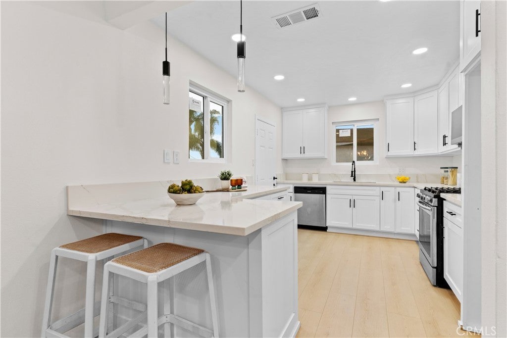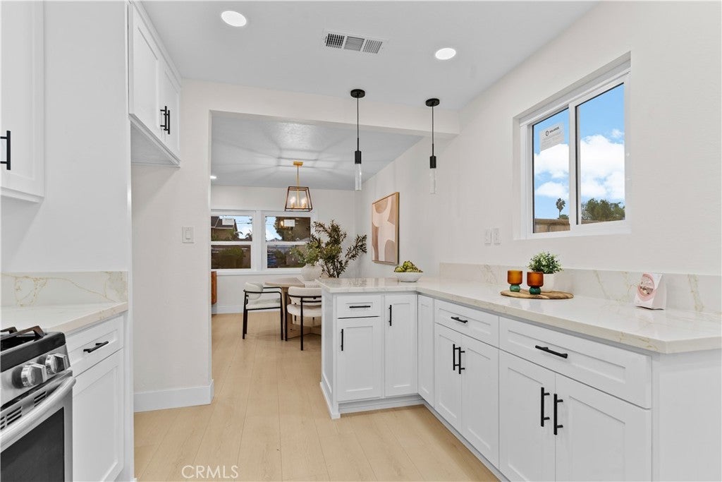 Welcome Home, where modern design meets timeless comfort! This beautifully remodeled 3-bedroom residence has been transformed from top to bottom, offering a perfect blend of style, practicality, and high-quality finishes. Step inside to an airy, light-filled living space enhanced by fresh interior and exterior paint, brand-new recessed lighting, and an open layout that feels instantly inviting. The stunning custom kitchen, crafted with real cabinetry, not prefabricated, features sleek Quartz countertops and stainless-steel appliances, including a stove, microwave, and dishwasher. It’s truly the heart of the home. Enjoy year-round comfort with a brand-new HVAC system, dual-pane windows, and ceiling fans in every bedroom. The updated bathrooms feature clean, modern finishes in soothing tones, while new flooring flows seamlessly throughout the home for a cohesive, elevated feel. Outside, the landscaped corner lot offers the perfect blend of curb appeal and functionality. Relax or entertain in the spacious backyard shaded by a beautiful mature tree. The detached 2-car garage provides ADU potential, with design plans already available, plus room for RV or boat parking. Located in a desirable Whittier neighborhood close to parks, schools, and local favorites, this home is truly turnkey. Don’t miss the opportunity to make this beautifully remodeled gem your own!