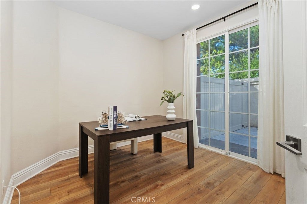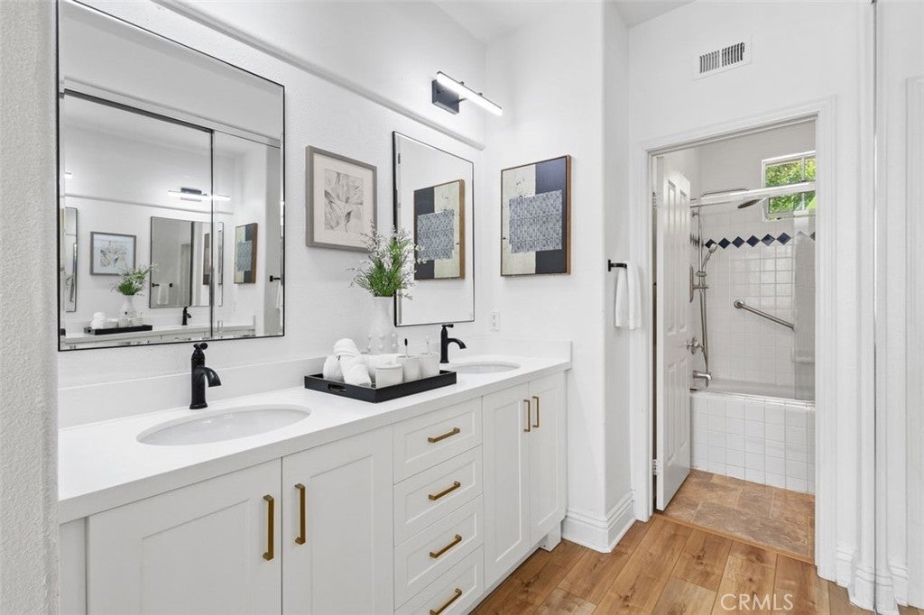 Nestled in the highly coveted Westpark community, this charming single-story detached residence combines tasteful upgrades with a serene greenbelt location. The open floor plan is highlighted by vaulted ceilings, abundant natural light, and seamless indoor-outdoor flow. Enjoy two well-designed outdoor patios perfect for morning coffee, alfresco dining, or simply relaxing in your peaceful surroundings. Thoughtfully upgraded throughout, the home features new luxury vinyl plank flooring, newer cabinetry, sleek quartz countertops, stainless-steel appliances, and remodeled bathrooms with quartz vanities and modern tile floors. The primary suite offers privacy and patio access, while the secondary bedroom also enjoys direct access to its own outdoor space. Situated on a private greenbelt with mature trees and lush landscaping, the home provides a tranquil retreat while still being close to top-rated schools, shopping, dining, and major freeways. Residents enjoy access to resort-style amenities including pools, spas, tennis courts, basketball courts, trails, parks, and playgrounds.