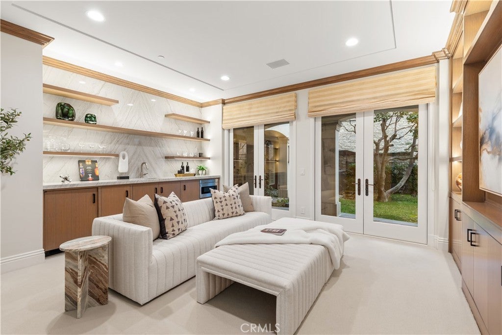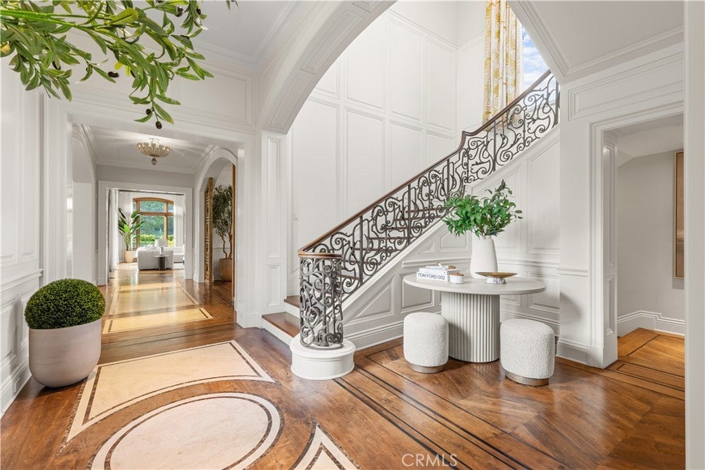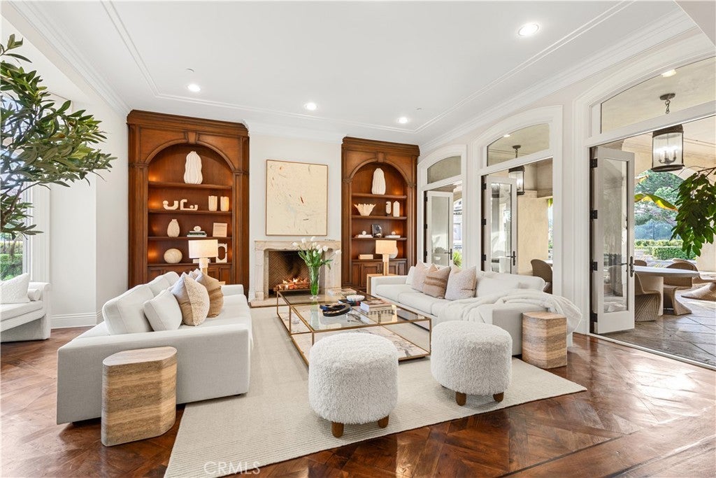 Set on a rare double lot just steps from the Pacific Ocean, 7 Shoreview is acclaimed as one of Pelican Point’s most significant architectural estates—a gated coastal compound conceived for multigenerational living, privacy, and timeless design. Encompassing approximately 11,000 square feet, the residence commands over half an acre of manicured grounds with serene golf course and garden views, located within Newport Coast’s only oceanfront, guard-gated enclave with private access to Crystal Cove State Beach. Crafted by master artisans, the home blends hand-selected woods, honed natural stone, wrought iron, and classical detailing, creating interiors that feel warm, enduring, and deeply refined. A dramatic sequence of formal living and dining spaces gives way to a wood-paneled library, expansive chef’s kitchen, multiple family lounges, and a day-lit lower level designed for wellness and recreation—complete with a steam-room and elevator. French doors throughout dissolve the boundary between indoors and out, leading to a true resort environment: a sparkling pool and spa, pool pavilion with kitchenette and bar, outdoor fireplace, and a collection of covered and open-air terraces that form a series of intimate outdoor retreats. Mature trees and sculpted gardens envelop the property, reinforcing its sense of seclusion. Designed for modern family life, the estate features two main-level guest suites ideal for in-laws or guests, and an expansive primary retreat with sitting room and spa-inspired bath with heated floors. An oversized four-car garage adds convenience and functionality to the compound layout. All of this sits within Pelican Point—the only community in Newport Coast west of Pacific Coast Highway—offering 24-hour guard-gated security, direct gated access to the sand, and proximity to the Resort at Pelican Hill, Crystal Cove Promenade, and the best of coastal Orange County.