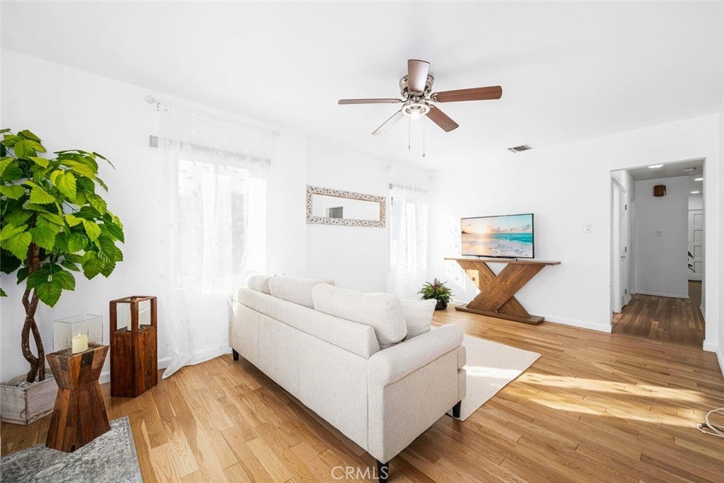 JUST REDUCED! BEST VALUE ON THE MARKET! This upgraded 5 Bedroom 2 Bath home located in the highly desirable South of Conant neighborhood was upgraded within the last 4 years. This spacious home features Quartz Counters, Newer A/C, Newer Roof, Paid Off Solar, beautifully Upgraded Main Floor Full Bath with Marble topped vanity, Newer Carpeting, just refinished Natural Hard Wood Floors, 3 Enormous Bedrooms Upstairs with 2 Bedrooms Down, New Stainless Steel Gas Range and Microwave. This is the perfect floor plan for multi-generation family living or live-in help with ample space for everyone. Beautiful Custom Wood Mantle surrounds the Natural Wood Burning/Gas Fireplace in the generously sized living room which you could also use as a formal dining room. Recently installed large format Porcelain Tile throughout Kitchen which also features a full size dining area and island. The Full Size Laundry Room downstairs has ample area for ironing and storage. The additional enormous storage space under stairs to 2nd floor could easily be a walk-in pantry. The private gated back yard with fountain has been professionally landscaped and is secured with large wrought iron gates. Newer concrete driveway with RV Parking and Hook Ups lead to the 2-car detached garage. This beautiful home is Centrally located near top schools, great shopping and easy 405 and 605 freeway access.