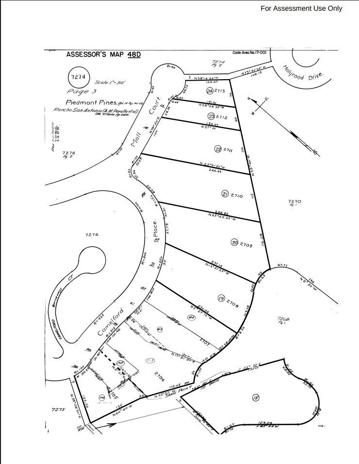 APN# 048D727401500 . Lot may be accessed by an unpaved fire road which begins at the end of Morley Drive right after intersection with Blachford Court. There is also a 10' wide pedestrian path down to the lot located on the right side of 2705 Camelford Place. This large 3/4 acre vacant residential lot on Camelford Pl is in the Piedmont Pines neighborhood of Oakland. The lot is zoned for single family, however, one may be able to build two homes utilizing SB9 , . Parts of the lot are flat for suitable building site surrounded by natural beauty of the wooded landscape in the Oakland Hills. Buyer will need to investigate development potential with City of Oakland.