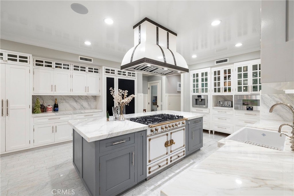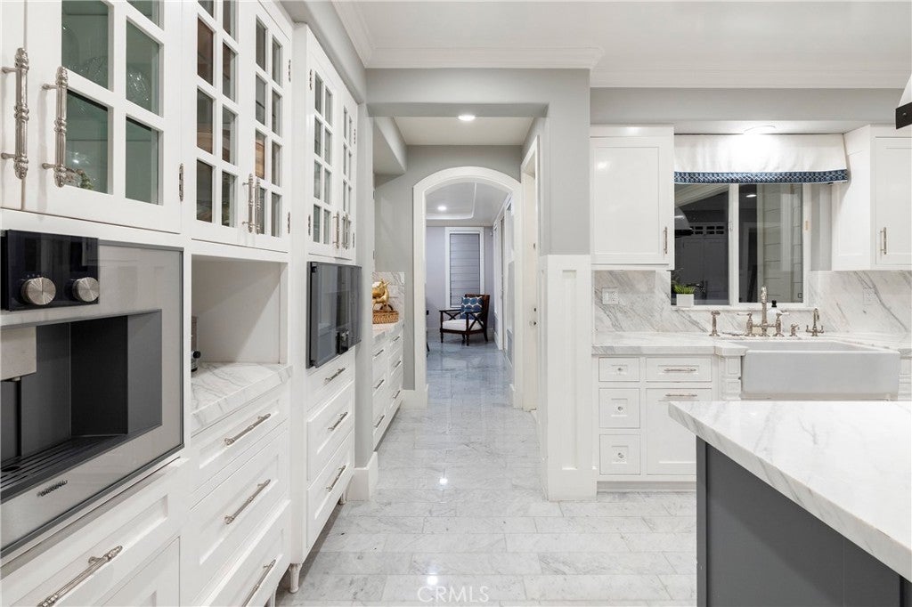 Sunset Views & Ultimate Privacy await you at this Peninsula estate. On-trend luxury meets timeless craftsmanship in this completely reimagined, no-expense-spared remodel—an exceptional, turnkey residence overlooking the golf course. Inside, the home has been transformed with Carerra marble flooring, smooth-finish walls, custom wainscoting, and designer-selected finishes throughout. The true showpiece is the epicurean chef’s kitchen, featuring Calcutta marble surfaces, custom cabinetry with soft-close hardware, a Miele dishwasher and refrigerator, an oversized La Cornue range, and Gaggenau built-ins, including a professional espresso/gourmet coffee system and steam oven. With over 4,000 sq. ft. of refined interior living space, the home offers four bedrooms, including a main-floor bedroom and full bath, plus an office area, and bonus room that can easily be converted to a fifth bedroom. Every room showcases thoughtful craftsmanship, from custom moldings and beams to coffered ceilings, hand-crafted fixtures, and a combination of Carrera marble and rich wood flooring. Bifolding doors open to a lush backyard complete with pool, spa, outdoor kitchen and unobstructed golf course views. Located within an award-winning school district and set inside a 24-hour guard-gated community, this residence offers luxury, security, and convenience at the highest level. Completely updated, meticulously finished, and truly move-in ready—this is coastal-golf-course living at its finest.