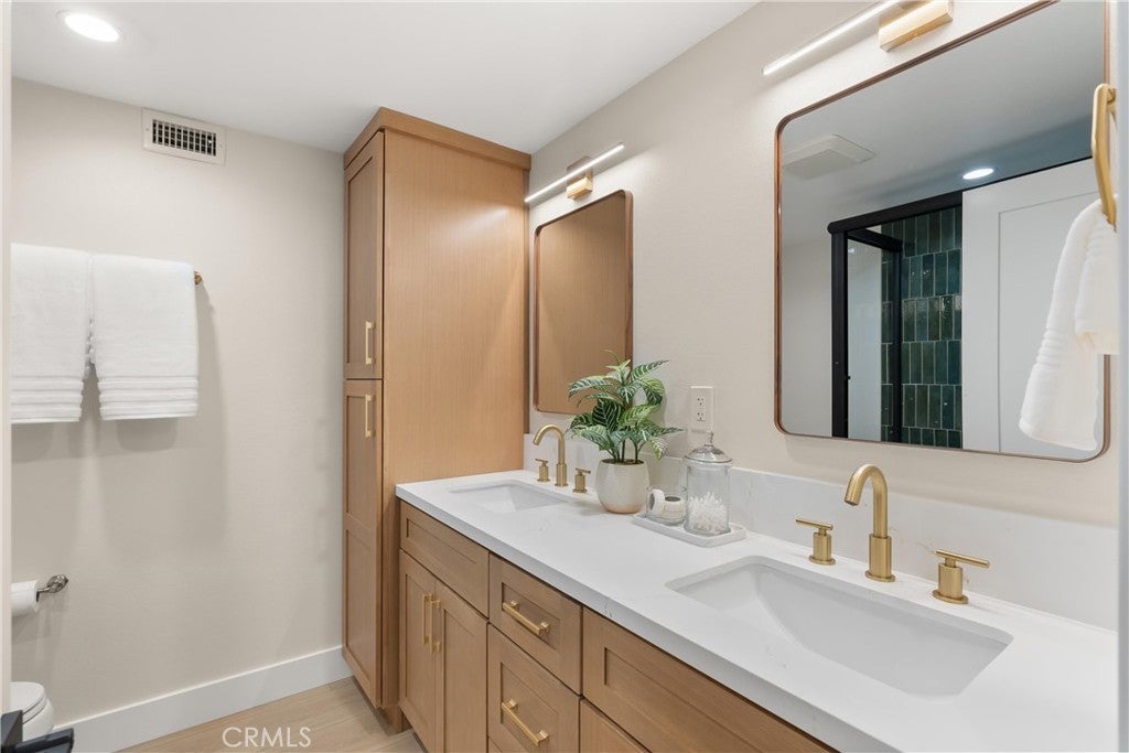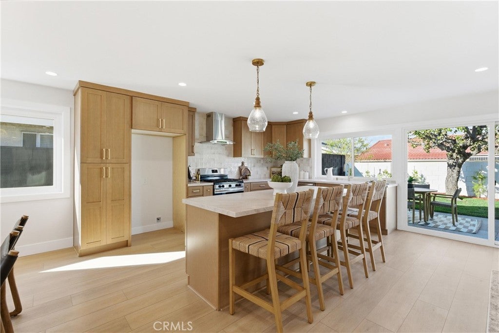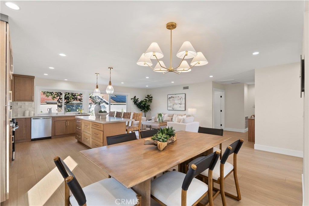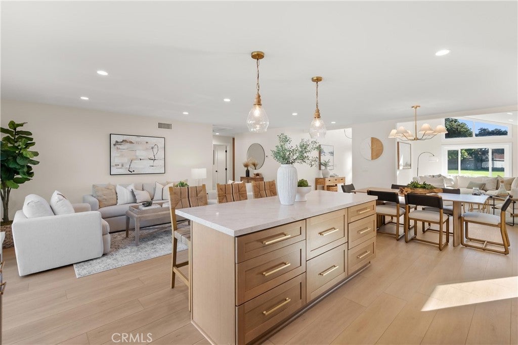 Beautifully renovated single story 4 bedroom 2 bathroom home located in the highly desirable College Park East neighborhood of Seal Beach, within the award winning Los Alamitos School District. This modern and move-in ready home offers designer upgrades, open concept living, new: wide plank flooring, ceiling fans, quartz counters, redesigned bathrooms, recessed LED lighting, and a clean coastal aesthetic throughout. The expanded kitchen features Taj Mahal quartz countertops, new cabinetry, stainless appliances, elegant pendant lighting, and a large center island that opens to the living and dining areas. The layout is ideal for everyday living and entertaining. Wide plank, luxury waterproof vinyl flooring, new interior doors, and contemporary fixtures create a cohesive and elevated feel in every room. The primary suite includes a beautifully updated bathroom with a glass enclosed walk in shower and modern tile. Three additional bedrooms, each with dual mirrored closet doors & closet lighting, offer options for guests, work from home, or fitness space and a full sized interior laundry room with ample storage and cabinetry. The second full bath has also been remodeled with current designer finishes. Outside, the low maintenance yard extends the living space, is perfect for outdoor dining or entertaining. Adding to the most updated style and design is the comfort of an energy efficient heating and AC system and that each bedroom has their own center ceiling fans, all dual pane windows. The single loaded street means that you have unobstructed views of Almond Park directly across the street, offering over an acre of outdoor space, a playground, basketball court, and open grass field just steps from the front door. A wide driveway and attached, fully finished, painted and epoxy floor garage, and the interior tract location minimizes drive by traffic. The modern design is captured inside and outside, with rich wood tone accent sides that flow to the new double door enter and inside. College Park East is one of Seal Beach’s most sought after neighborhoods due to its proximity to Los Alamitos schools, the Seal Beach Tennis and Pickleball Center, Old Ranch Country Club, Old Town restaurants, the beach, and easy access to the 405 and 605 freeways. This is the turnkey single level home buyers consistently look for in Coastal North Orange County, fully updated, functional, and move in ready from day one.