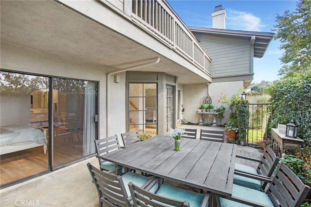 Gorgeous home in prestigious Rancho San Joaquin in Irvine. ATTACHED DIRECT ACCESS GARAGE & driveway parking. PLUS attached carport steps to front door also w/ driveway, for a total of 4 private parking spaces, plus street parking. This stunning home will take your breath away! Pretty travertine courtyard entry w/ stunning custom front door, OPEN FLOOR PLAN, soaring ceilings, glass railings, REAL HARD WOOD FLOORS, windows galore that let the sunshine pour in, balcony across the entire back side w/ a wide open view of Mason Park! No one above or below & not staring into a parking lot! Beautiful kitchen remodel w/ spectacular black absolute granite counters, high-end cabinetry and Thermadore appliances, built in refrigerator, walk in pantry, pendent & recessed lighting. Pull up a barstool for casual dining at kitchen counter or move into the sunny open dining room. The spacious living room features a beautiful REAL WOOD BURNING FIREPLACE w/ the perfect mantel for holiday decor and gorgeous black granite hearth. You will love the impressive floor to ceiling custom built-in bookshelves in the step-down den complete w/ rolling wood & brass library ladder. Downstairs is a lovely bay windows & door leading to enclosed patio, perfect for family barbecues or morning coffee. The spacious primary bedroom also looks out onto the sunny private patio. The primary bath has a brand new beautiful double vanity & new walk-in shower w/ modern sliding glass doors. There is a walk in closet, builtin cabinets and storage. The second bedroom has pretty french doors to patio, remodeled bathroom w/ built-in cabinetry & luxurious Walker & Zanger handmade tile shower w/ built-in seat. NEW HVAC and NEW ROOF. And since you're going to be doing so much entertaining in your fabulous new home there is also guest parking at the end of the cul-de-sac turnabout. The HOA dues INCLUDE Water & Trash, greenbelt maintenance & front yard landscaping. There are 2 resort-style pools & spas for your enjoyment. BONUS if you drive electric... For your convenience there is a Level 2 EV CHARGING STATION available in the community, exclusively for residents. Walking distance to the Racquet Club of Irvine, Rancho San Joaquin Golf Course & "The Terrace" restaurant, University High, UCI, shopping centers, dining & entertainment. Close to beach, back bay, hiking/biking trails, medical, John Wayne Airport, Disneyland etc. NO Mellow Roos. Low prop tax rate of 1.03% AWARD WINNING IRVINE UNIFIED SCHOOL DISTRICT.