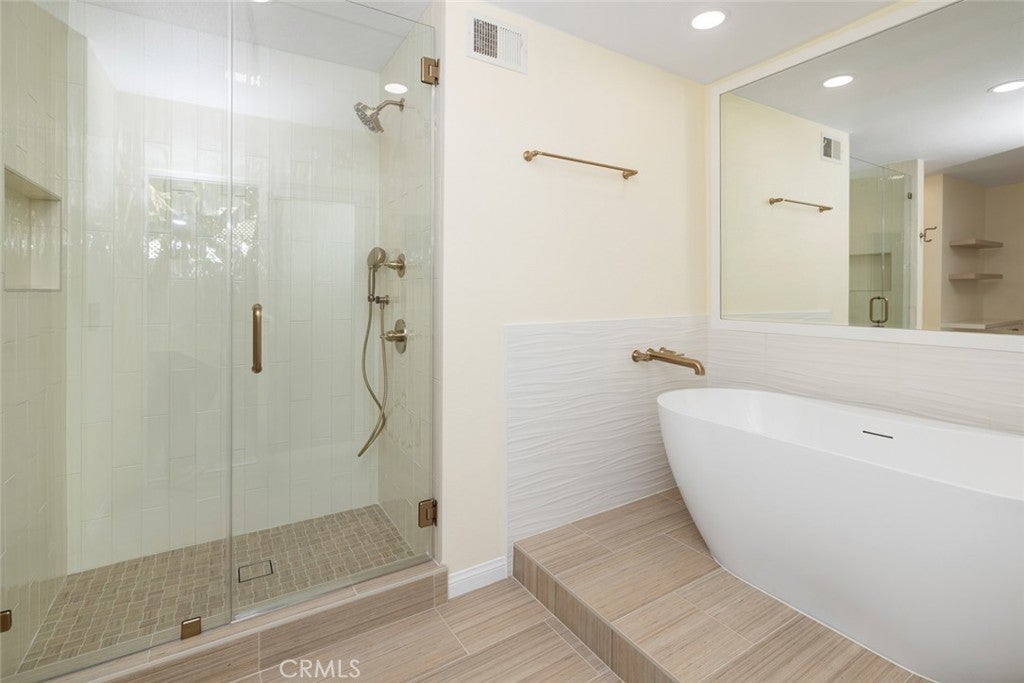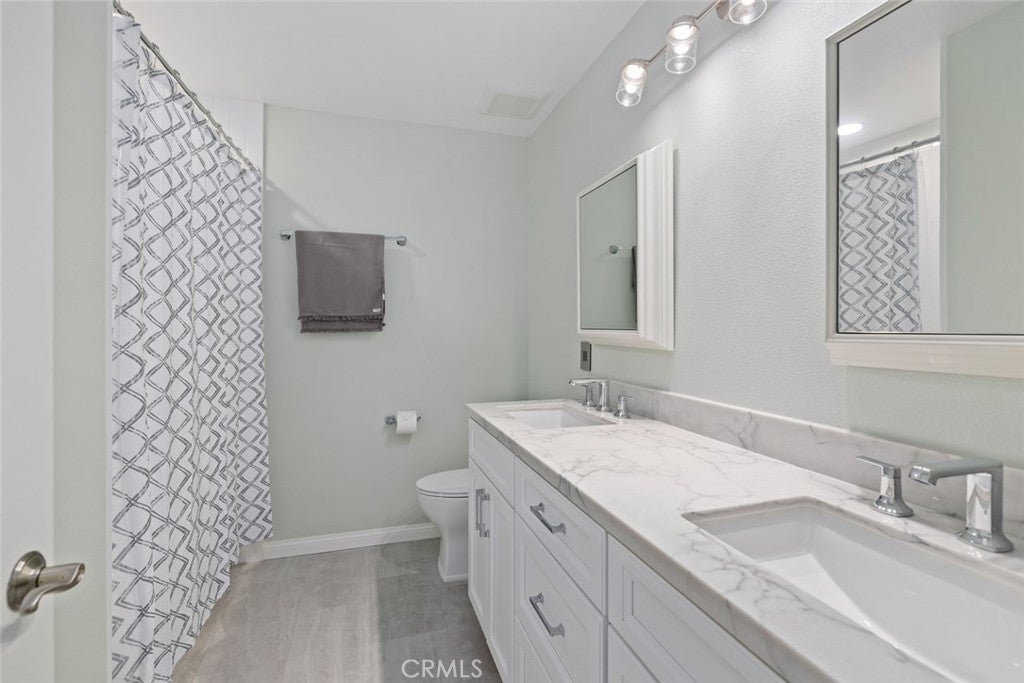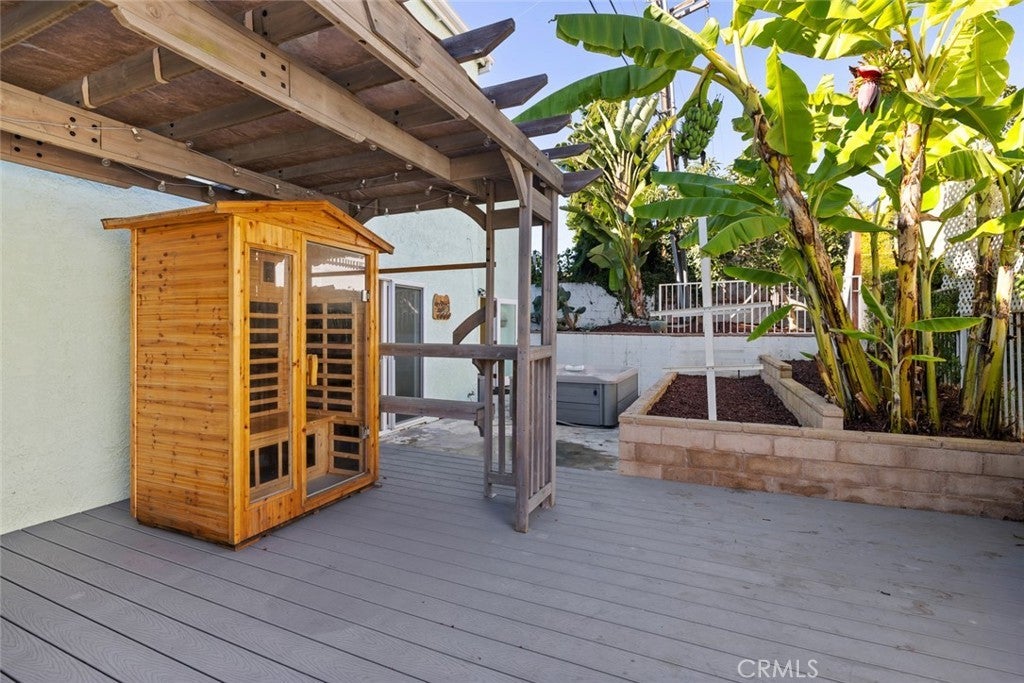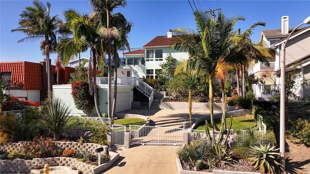 Experience the best of coastal living in this beautifully upgraded Southeast San Clemente home, ideally positioned on a peaceful cul-de-sac lined with mature trees. Featuring 4 bedrooms, 3.5 bathrooms, and 2,940 sq ft of living space on a generous 7,044 sq ft lot, this reverse floor plan home is designed to showcase sweeping ocean and sunset views from the main living areas, kitchen, and expansive upper deck. Upstairs, vaulted ceilings and wide sliding glass doors fill the living spaces with natural light and invite refreshing ocean breezes indoors. The remodeled kitchen opens seamlessly to the living and dining areas and features quartz countertops, a large island, stainless steel appliances, a walk-in pantry, wine fridge, and abundant storage. The spacious deck, recently resurfaced, extends the living area outward—perfect for entertaining or enjoying nightly sunsets. The private primary suite offers a peaceful retreat with a walk-in closet, a newly remodeled spa-like bathroom with quartz countertops, dual sinks, a soaking tub, and a tiled walk-in shower. A door from the bathroom leads directly to the side yard. The lower level includes an ensuite bedroom with a walk-in shower and two additional secondary bedrooms, one with its own private exterior entry—ideal for guests, extended family, or a home office. The lush grounds include citrus trees, palms, a pergola-covered side yard with decking, banana and avocado trees, garden planters for herbs and vegetables, and an above-ground spa and sauna for the ultimate relaxation. Set back from the street, the property offers exceptional privacy, a large gated driveway, and a detached 2-car garage. Additional upgrades include dual-pane windows and sliders throughout, LVP flooring in the upstairs living areas and stairs, remodeled bathrooms, new forced-air furnace and water heater, new deck surfacing, and an updated laundry room with a convenient dog wash and ample storage. All of this is just minutes from San Clemente’s favorite dining spots, boutique shopping, the iconic pier, 'Del Mar' Street, Local Beaches, Dana Point Harbor, and world-class surf breaks. A rare opportunity to enjoy refined coastal living in one of San Clemente’s most sought-after neighborhoods.