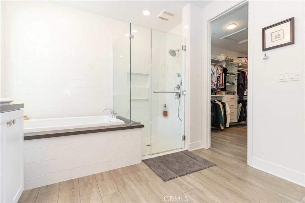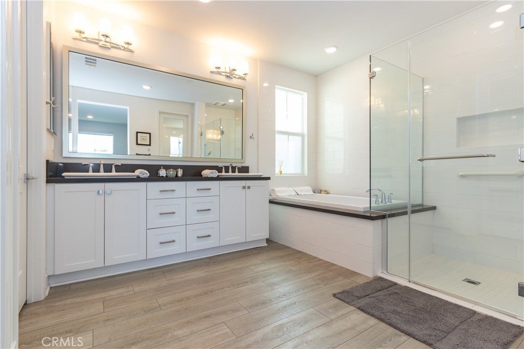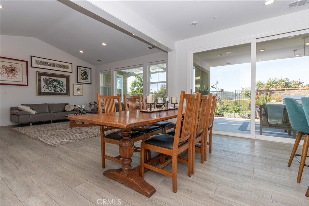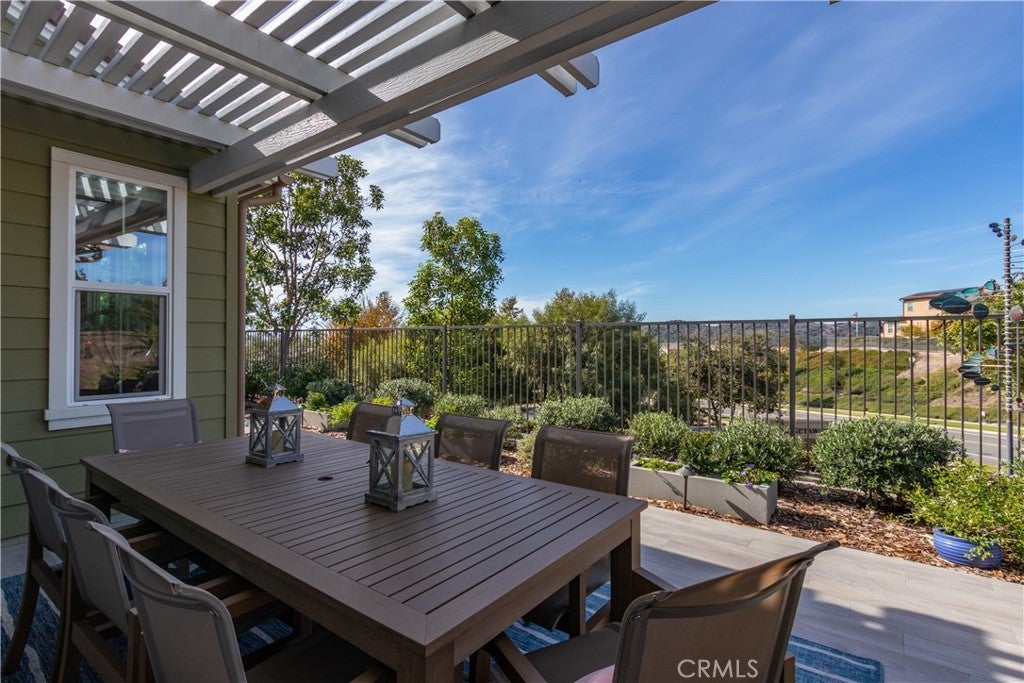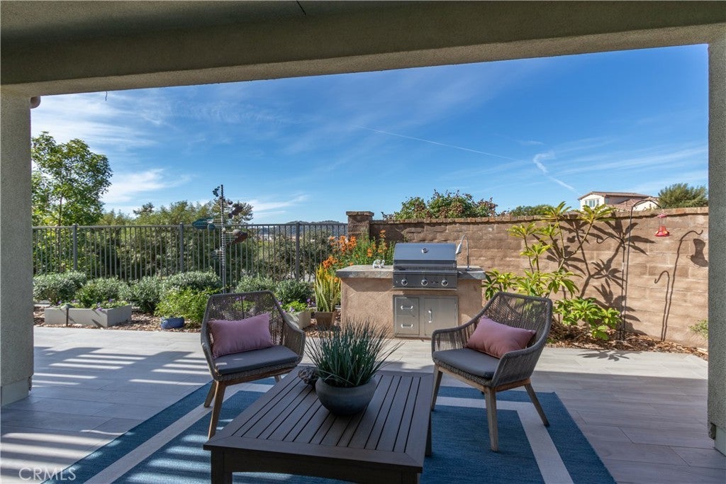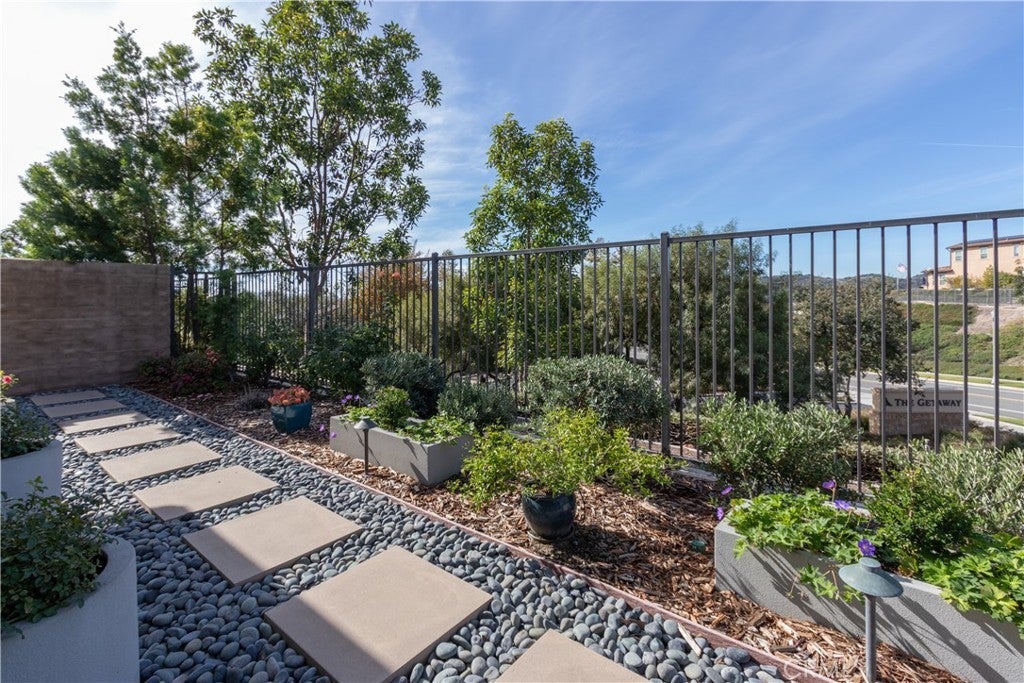 Welcome to 5 Garcilla in the popular 55+ Esencia Community of Rancho Mission Viejo. This spacious one story 1810 square foot detached home is positioned beautifully for outstanding sunset views from the living room, dining room and kitchen. The lot offers expanded room for a large California room, covered patio area, and a built in BBQ. The rear yard is graced with 7 fruit trees, 5 raised vegetable beds and immaculate grounds abounding in flowers.. As you enter the front door and beyond the foyer, you will will be met with a wide open floor plan from living room to dining area to gourmet kitchen. High ceilings with recessed lighting, bright white paint, laminate wood floors and expansive windows bathe this area in natural light. The kitchen is adorned with quartz counters, decorator backsplash, stainless appliances and white shaker cabinets. The primary bedroom boasts a beautiful sunset view, The ensuite bathroom has been upgraded and features 2 walk in closets. One has extensive built-ins, make up area and window. The 2 additional bedrooms are accompanied by 2 bathrooms. There is a separate laundry room. The 2 car direct access garage sports epoxy floors. Enjoy the resort lifestyle and exclusive use of the Gavilan 55+ amenities including The Hilltop Club, The Perch, The Hacienda, The Outlook, BBQ Barn and The Getaway. Enjoy the state of the art fitness center, salt water pool, spa, cabanas, yoga studio, firepit and social lounge.