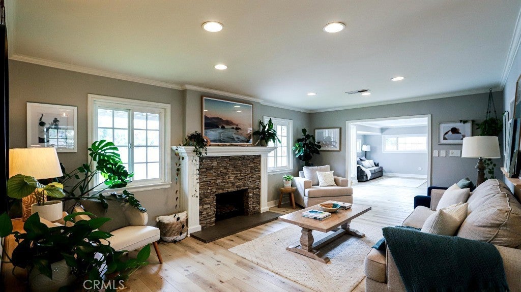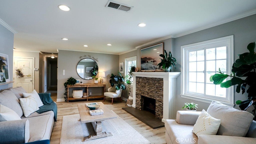 Welcome to your stunning single story home set on a spacious quarter acre plus corner lot in the city of Orange. This incredible location places you less than a mile from popular shopping centers, dining, and top rated schools within the highly regarded Orange Unified School District. Step inside and enjoy an open and inviting floor plan filled with beautiful natural light. This charming three bedroom two bathroom residence features an upgraded kitchen with modern finishes, upgraded bathrooms, a warm and cozy living room centered around a stone fireplace, and a second entertainment room that opens directly to the expansive backyard. The outdoor space is a true retreat, offering mature fruit trees including pomegranate, grapefruit, peaches, and tangerines. The large yard provides endless possibilities for gatherings, play areas, or quiet relaxation while taking in the serenity of this peaceful neighborhood. Additional highlights include RV parking, a generous two car garage, a large driveway, and plenty of open space throughout. Homes like this rarely come available. Come experience everything this beautiful property has to offer.