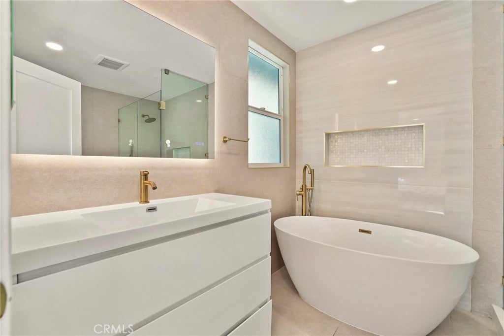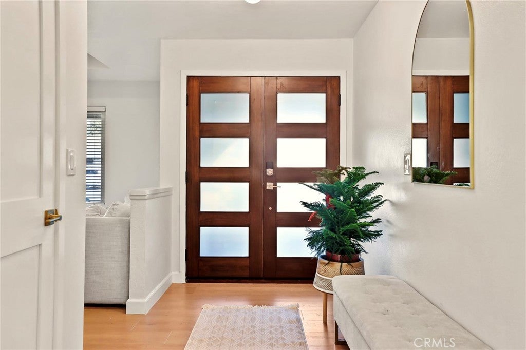 Welcome to this bright and airy single-story home situated on a spaciously wide and quiet cul-de-sac street. As you drive into the community, you will instantly notice how immaculate the neighborhood is, displaying strong pride of homeownership. Located adjacent to Villa Park, you feel away from the bustling city, yet still only minutes from the 55 freeway, grocery stores, retail shopping and an elementary school that is walking distance. This home was recently remodeled in 2024 with intentions to be a forever-home. Almost everything is new: waterproof flooring throughout the home, remodeled kitchen, master ensuite bathroom, marble tiling with fireplace enclosure in family room, modern wood and glass entry french door combined with Vista brand premium screen french doors. The locking mechanism on the screen doors are so sturdy and secure, it is safe leaving the entry doors open all day to allow breezy fresh air flow! The home currently has 3 bedrooms and 1 office/den that can easily be converted to a 4th bedroom. The "Alumawood" patio cover in the backyard was built in 2024 and should last 30+ years! The removable custom pool fence with a safe auto-closing gate was installed in 2024 and still in very new condition. There is a tangerine and avocado tree in the backyard that produce plentiful sweet and tangy fruit every year! With all the new upgrades, there is no need to spend extra money on remodeling, as this home is ready to move in!