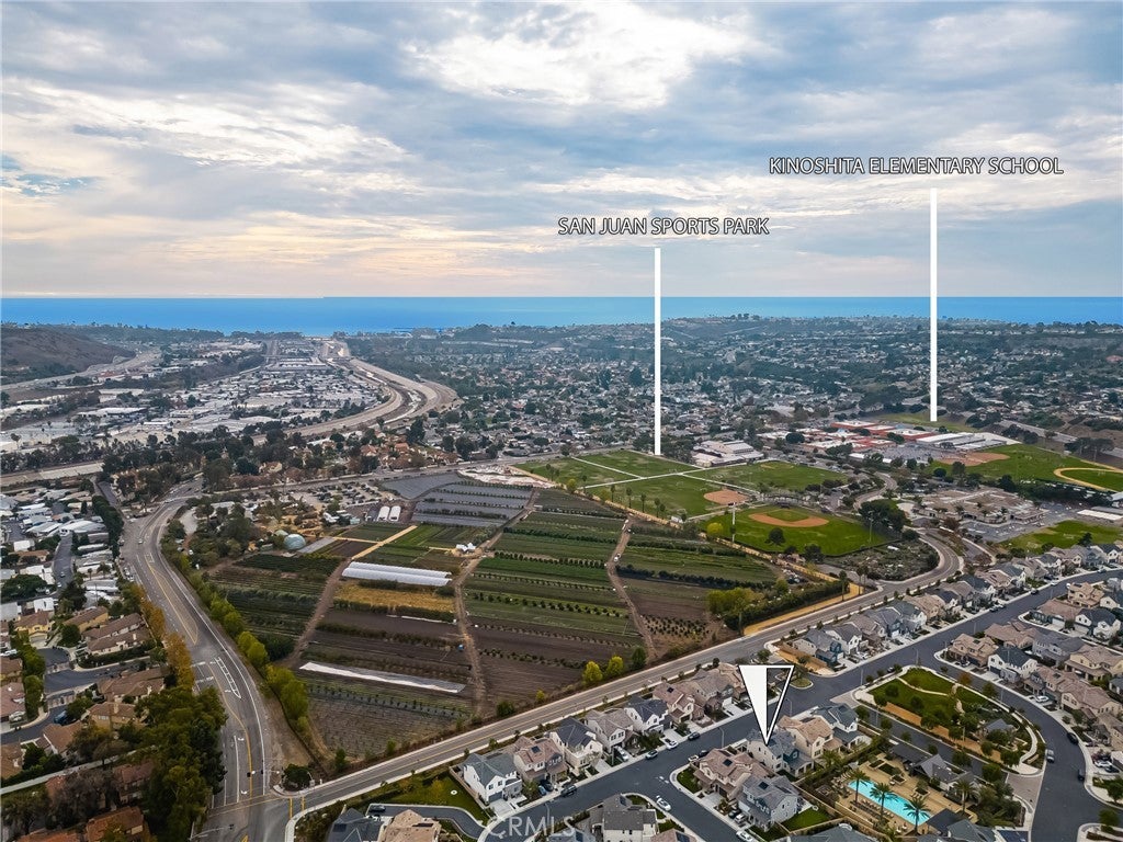 Welcome to this beautifully upgraded 2023-built home located in the gated community of The Farm in San Juan Capistrano. This modern residence offers 4 bedrooms, 4 bathrooms, PLUS an office with a bright and open floorplan designed for today's lifestyle. The main level features a spacious great room with abundant natural light, wide-plank flooring, and seamless flow to the covered California patio and low-maintenance backyard. The gourmet kitchen includes a large island, quartz countertops, Zellige tile backsplash, custom brass hardware, Sub-Zero refrigerator, Wolf range, and double ovens. A private downstairs bedroom and full bathroom provide ideal guest or multigenerational living. Upstairs includes a generous primary suite with a soaking tub, walk-in shower, dual sinks, and a large walk-in closet, along with two secondary ensuite bedrooms and a convenient laundry room. The outdoor space is thoughtfully finished with turf, modern pavers, and surrounding greenery for year-round enjoyment. Additional highlights include solar panels, a Tesla charger, and an attached two-car garage. The Farm is a newer gated enclave offering a pool, parks, walking paths, BBQ and picnic areas, and easy access to beaches, Dana Point Harbor, historic downtown San Juan Capistrano, shopping, dining, and top-rated schools. A rare opportunity to own newer construction with designer finishes in a prime coastal-close location.