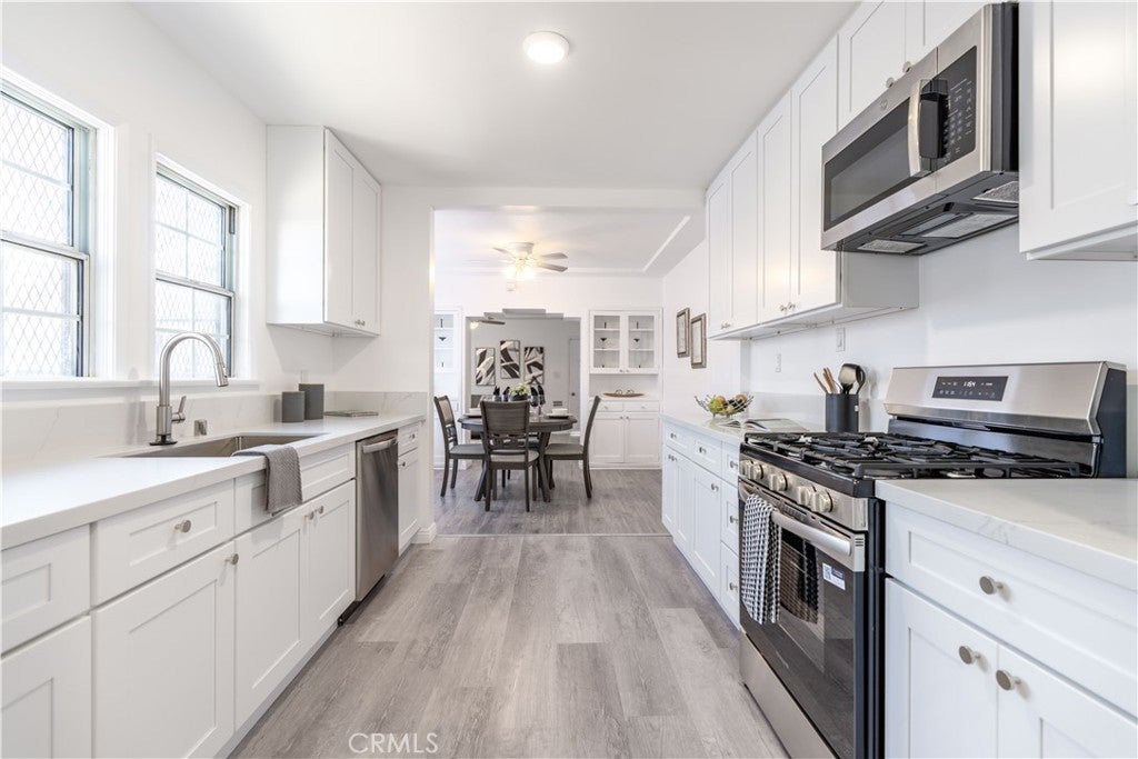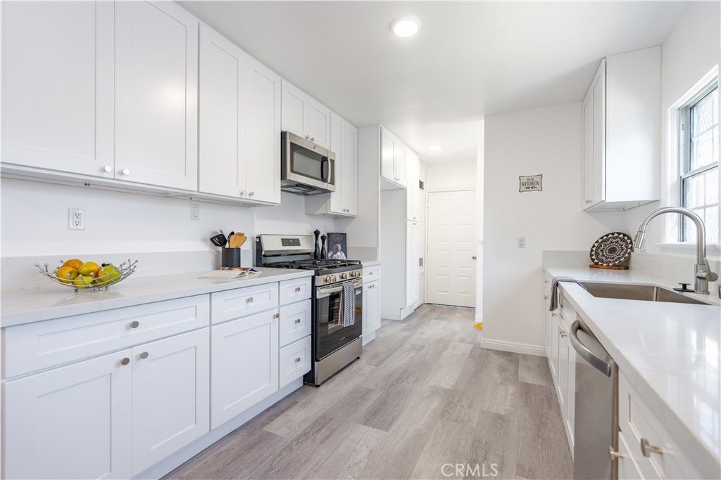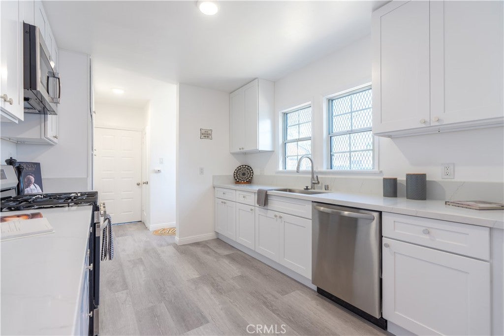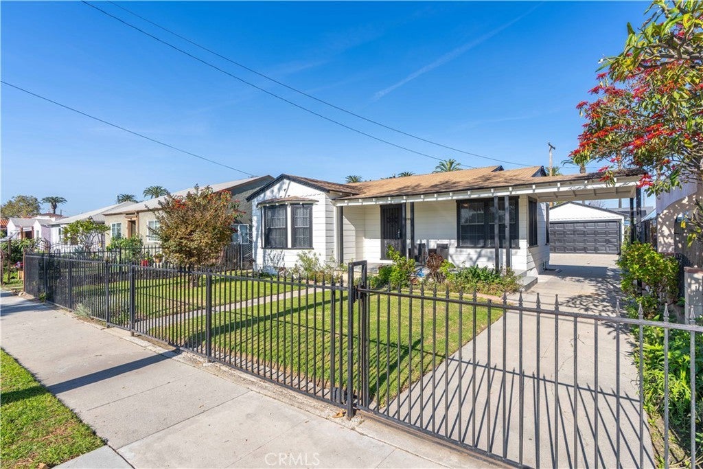Incredible curb appeal. Discover the charm of this delightful Lynwood residence, where classic features meet modern upgrades. You will enjoy an open floor with abundant natural light. The kitchen is totally redone with new cabinets, new sink, new appliances, and new quartz counter top. Other upgrades include new paint outside and inside, new carpet, new ceiling fans in the bedrooms, new outlets, new hardware, new drains, new laundry hook-up for the washer dryer, new glazing of the bathroom, new toilets, and much more. The backyard is spacious for family gatherings, and the front porch is great for relaxing and viewing the quiet neighborhood. The lot is perfect for adding an ADU in the back. Located in the heart of Lynwood, this property offers easy access to local amenities. Enjoy a leisurely stroll or family picnic at nearby Lynwood City Park, a local favorite for its green spaces and community events. In fact, within about a 2-mile radius you will find about a half a dozen parks to enjoy outdoor recreation. Conveniently situated, this home is just a short drive to the 105 freeway, providing seamless connectivity to greater Los Angeles. Furthermore, residents can enjoy local attractions such as the Plaza Mexico, which is about 6 blocks away, offering plenty of shopping and dining options.