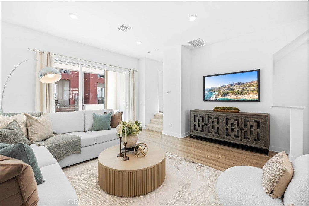 Discover this beautifully designed three-story townhome in Irvine’s coveted Great Park Neighborhoods, offering 3 bedrooms, 3.5 bathrooms, and over 2,000 square feet of bright, contemporary living space—enhanced by a fully paid-off solar system for energy efficiency and long-term savings. The entry level features a private bedroom with its own full bath, perfect for guests or a quiet home office. The main level showcases an open-concept layout where the gourmet kitchen, dining area and spacious living room connect seamlessly, enhanced by abundant natural light and a covered deck ideal for relaxed indoor-outdoor living. Upstairs, the luxurious primary suite provides a serene retreat with its own private balcony, accompanied by another well-appointed bedroom and bath. An attached two-car garage adds everyday convenience. Residents enjoy access to top-rated Irvine schools, including Solis Park K-8 and Portola High—both widely recognized for exceptional academic performance—along with nearby parks, trails, shopping and dining. This home blends modern elegance with comfort in one of Irvine’s most desirable communities.