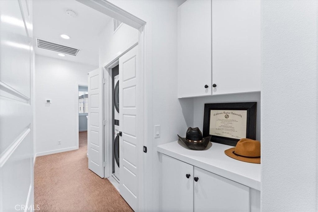 Rare opportunity to own a single family detached home with only one HOA! Corner lot, custom built gas fire pit in the private front courtyard, in the desirable community of Rancho Mission Viejo. This 2022 built home comes with upgrades, including PAID OFF solar. This home is located on a corner lot and upon entering the home, you will find upgraded wood-look tile throughout the entire main floor. The kitchen includes gorgeous granite counters, upgraded white subway tile backsplash, white cabinets with upgraded hardware, and stainless steel appliances. You will also find the powder bath and direct access to the 2 car garage. Upstairs, you will find the primary bedroom, which includes direct access to the balcony and a large walk-in closet. The primary bedroom's en-suite bathroom boasts an upgraded tile walk in shower, quartz counters, and upgraded tile flooring. The 2nd bedroom includes an en-suite full bathroom, with quartz counters and a walk in closet. The upstairs laundry designed for a stackable washer/dryer and includes built in shelving, for storage. The enclosed front yard and side yard are beautifully designed with pavers, custom built fire pit with direct natural gas line, and ready for irrigation and electrical. The 2 car garage has been upgraded with epoxy throughout. The home is centrally located within Rienda! Once a resident you can expect to enjoy all that the HOA amenities offers: local businesses, golf cart lifestyle, arcade room, pickle ball, bocce ball courts, clubhouse bar, fitness centers, local restaurants, Rancho Mission Viejo Schools, boulder pond directly across from this home and other neighborhood events including Farmers Markets. Shopping, dining, and beaches all within a short drive! Just minutes from the 241 Toll Road. Buyer to confirm all information and satisfy self with appropriate due diligence.