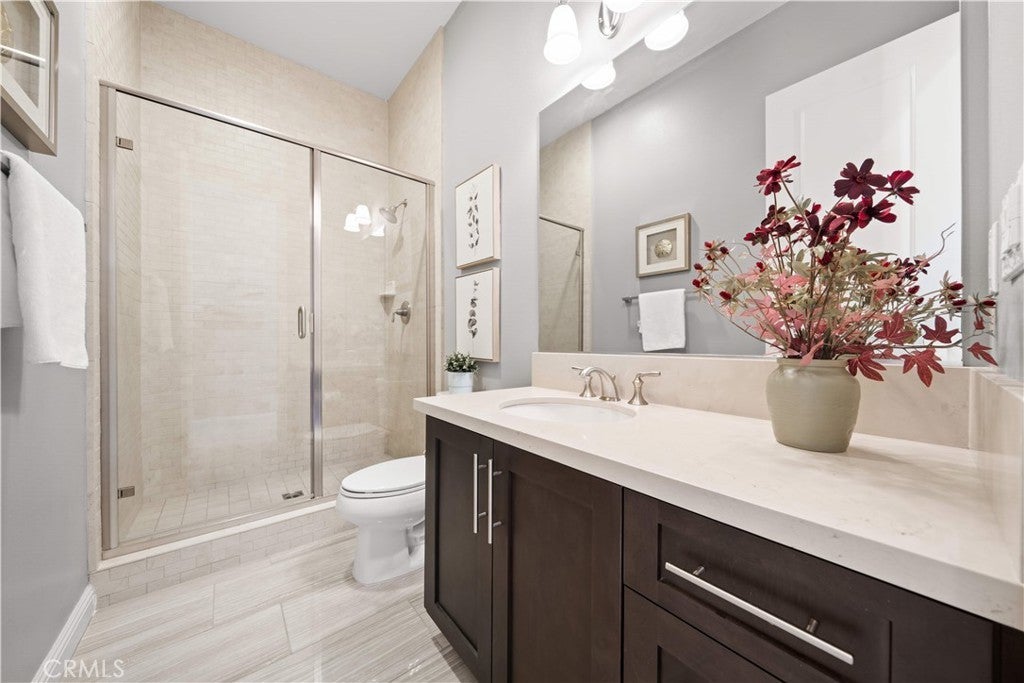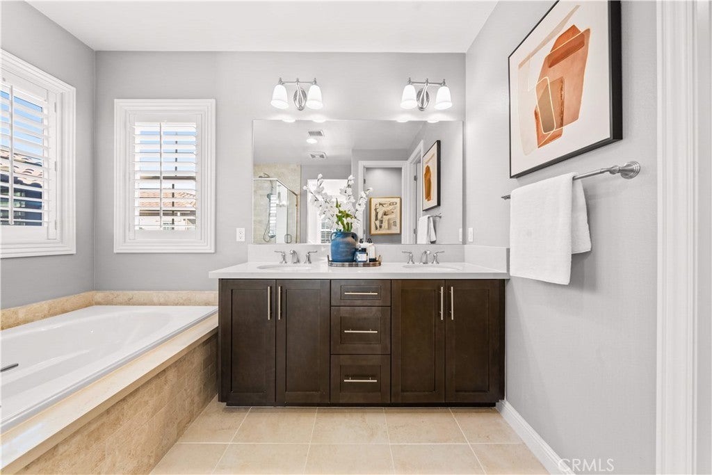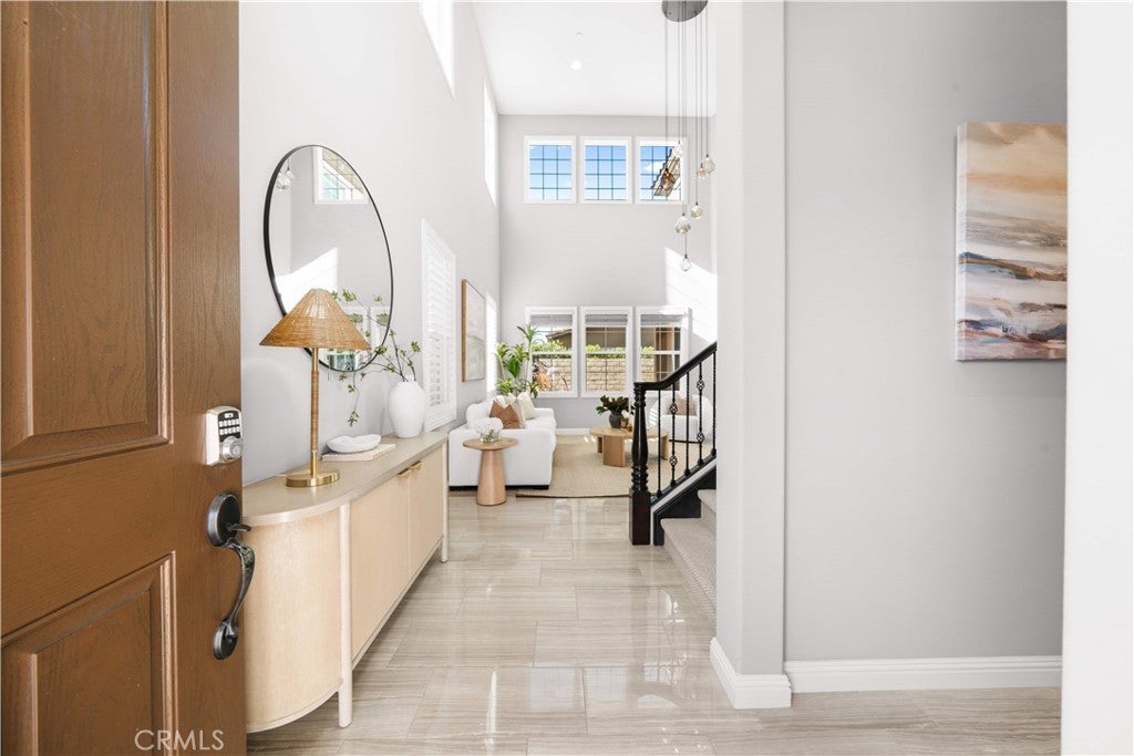 Beautifully upgraded 4-bedroom, 3-bath home located in the highly desirable community of Baker Ranch! This stunning residence features an open and airy floor plan with impressive soaring ceilings in the living room, creating a bright and spacious atmosphere from the moment you enter. The first floor is upgraded with elegant tile flooring throughout, offering both style and easy maintenance. The gourmet kitchen boasts quartz countertops, a large center island, stainless-steel appliances, and plentiful cabinetry—perfect for cooking and entertaining. The open-concept living and dining areas flow seamlessly to the private backyard, offering an ideal space for indoor–outdoor living. This home features one full bedroom and bath on the first floor, ideal for guests or multi-generational living. Upstairs, the spacious primary suite includes a walk-in closet and a spa-like bathroom with dual sinks and an oversized shower. Additional secondary bedrooms are generously sized and offer great flexibility for family, office, or guests. Residents of Baker Ranch enjoy access to resort-style amenities including multiple pools, parks, sports courts, playgrounds, clubhouses, and beautifully maintained outdoor spaces—all with no Mello-Roos and low HOA. Conveniently located near shopping, dining, and major freeways. This is a wonderful opportunity to own an exceptional home in one of Lake Forest’s most sought-after communities!