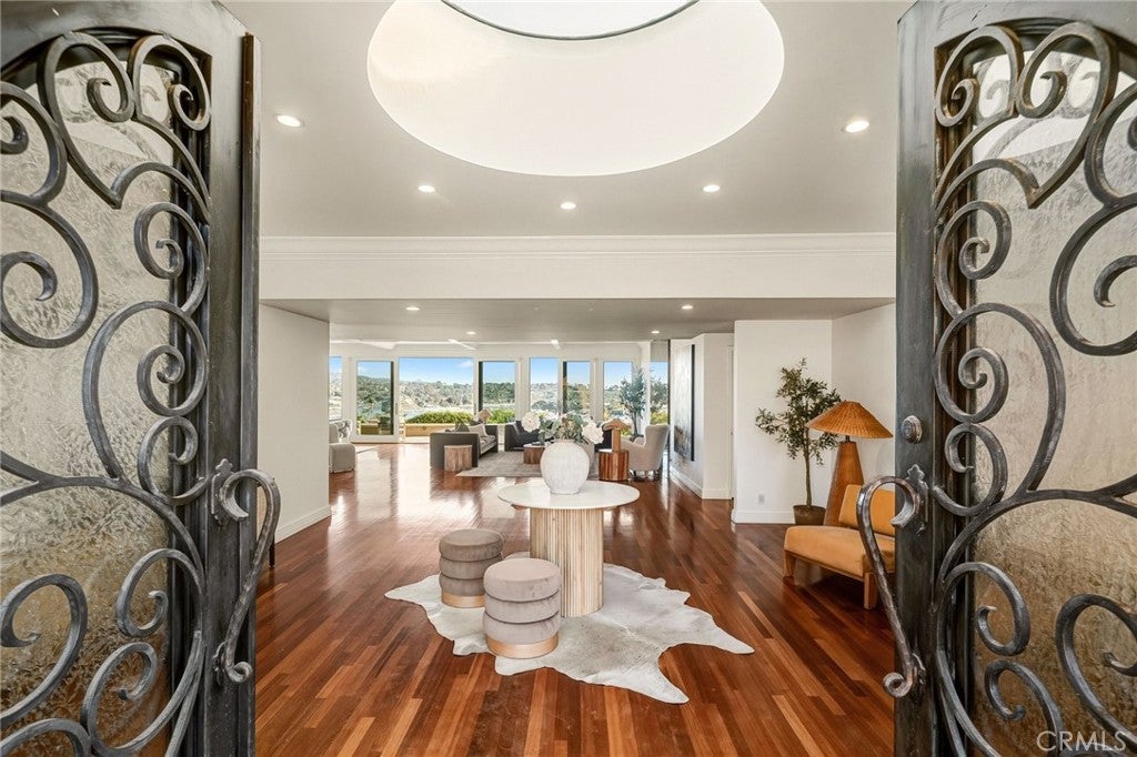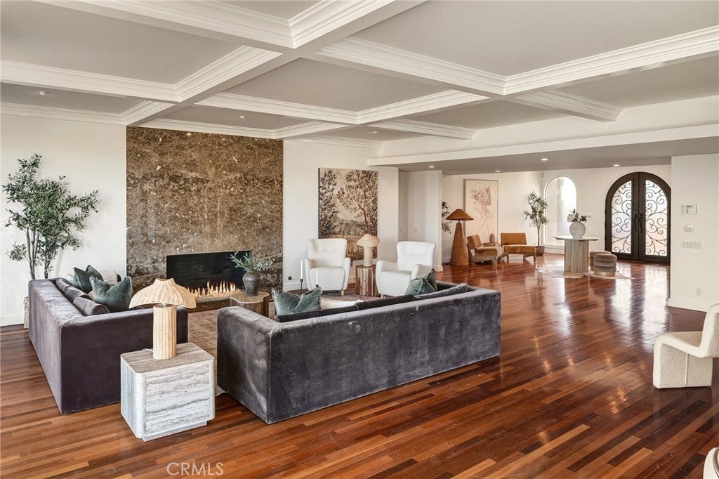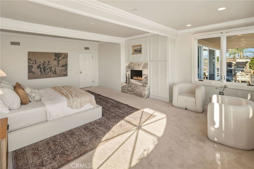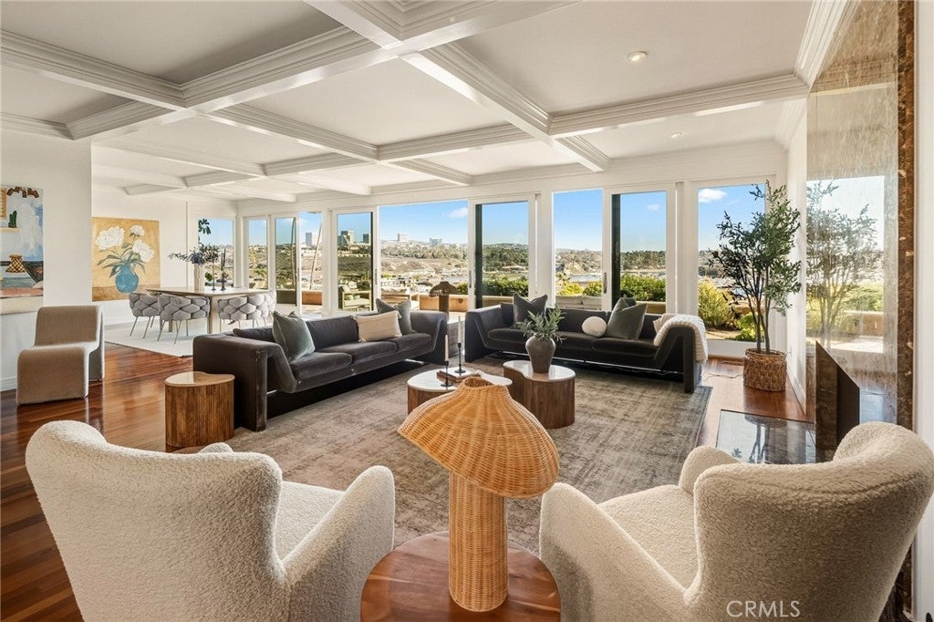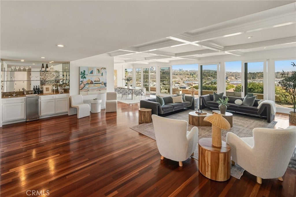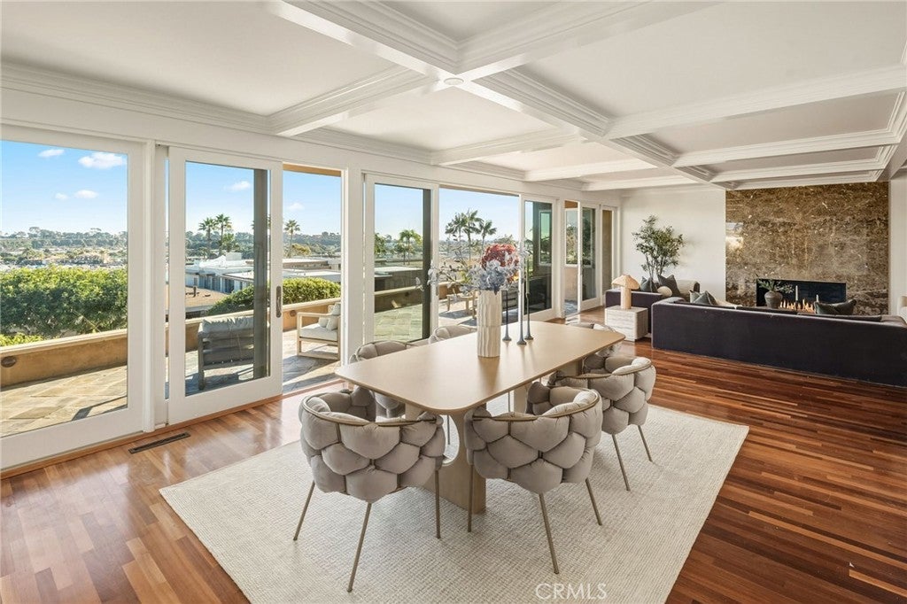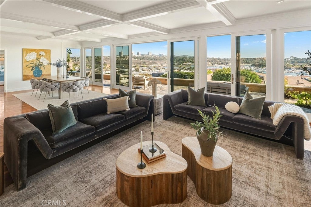 Perched on one of Dover Shores’ most desirable view lots, this Mediterranean Coastal luxury home captures sweeping, unobstructed views of the Upper Newport Bay, the Back Bay wetlands, and the distant ocean. The main living area is defined by top-to-bottom glass windows and sliding doors that open to the backyard, creating a seamless indoor–outdoor connection and filling the space with natural light and panoramic views. Inside, rich hardwood floors, elegant coffered ceilings, and a fireplace bring sophistication and warmth to the living space. The kitchen features upgraded stainless-steel appliances, a center island, a cozy breakfast nook, and bar-top seating, offering a comfortable and stylish setting for casual dining or gathering with family and friends. A refined library with custom wood built-ins provides a versatile space that can serve as an office, lounge, or whatever best suits the new owner’s lifestyle. The primary suite is a private retreat with its own fireplace, a spacious walk-in closet, and a spa-like bathroom featuring a jetted soaking tub framed by picture windows, a generous walk-in shower, and direct access to the backyard. The outdoor areas are designed for relaxation and hosting, with a built-in BBQ, hot tub, and lush landscaping accented by fruit trees, all set against the peaceful backdrop of the Back Bay. The property is gated for added privacy and security, and the garage includes built-in storage for convenience. Combining refined interiors, a flowing open layout, and one of the most sought-after view settings in Newport Beach, this home offers an exceptional opportunity to experience elevated coastal living at its finest.