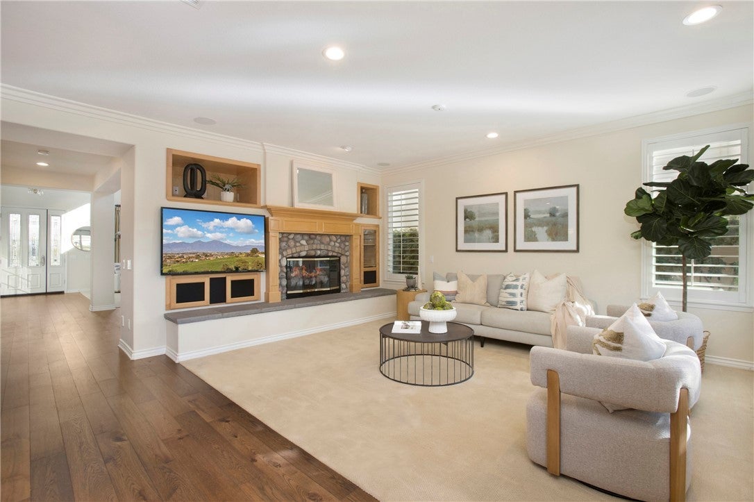Premium View Home in Sophisticated Guard Gated Hillcrest Estates Offering Unobstructed Westerly Views of Aliso and Wood Canyons Wilderness Park. Enjoy Canyon Breezes and Lots of Sunshine. Appealing Separate Stone Walkway to Gracious Porch with Beveled Lead and Glass Entry Door. Two Story Ceiling creates a Grand Entry to Formal Living and Dining Room. Main Floor Bedroom/Den with 9’1” Ceiling, Built-in Queen Murphy Bed Plus Stylish and Well-designed Full Powder Bath. Great Room Open Concept offers a River Rock Fireplace and Built-ins opening to the Customized Chef’s Gourmet Kitchen featuring Popular Center Island with Sink, Sunny Eating Area, Gas Cook Top, 9’ Ceilings, Double Oven, Granite Surfaces, and Built-in Stainless Appliances. Enjoy Expansive Captivating Views enhanced by Canyon Breezes, Electronic Exterior Window Shades, Wood Lattice 350 SF Custom Pergola, Gas Fire Pit, Stone, Low Maintenance Landscaping, Fountain, and Built-in BBQ with Gas and Electric available. Wrought Iron Gate and Fencing. Panoramic Canyon Views include Soka University, City Lights, and Gorgeous Sunsets. Luxurious Primary Suite with Stately 9’8” Recessed Ceiling with Crown Molding, Large Retreat with Expansive Canyon Views plus Wood Flooring, and Designer Walk-in Closet. Substantial Primary Bath with Dual Crema Marfil Marble Vanities and Wainscoting divided by Cosmetic Counter, a Deep Soaking Tub, and Walk-in Shower. Two Spacious Secondary Bedrooms with Beveled Mirror Closet Doors, and Full Bath. Pleasant Separation at Side Yards. Inside Laundry Room with Gas, Electric, Sink, and Yard Exit Door. Central Vacuum and Dual Air Conditioning. Three Car 664 SF Garage is Direct Access plus Desirable Tandem for Third Vehicle or Storage. Repipe in PEX 2017. Excellent Schools and Lilly Shappel Park with Gated Community Access during Daylight Hours. Exceptional Aliso and Wood Canyons Wilderness Park offers Nature’s Hiking and Biking Trails Spanning over 4,500 Acres with Protected Habitats. Laguna Niguel Regional Park close by has dedicated Recreational Uses, Two Pedestrian Bridges, 44-acre Lake with Catfish and Trout Fishing, Amphitheater with 4th of July Drone Show, Desirable Amenities including YMCA GYM, and Gardens. Original Owners of Popular 3,183 SF Cypress Creek Alt Plan on 6,239 SF Panoramic View Lot. Easy 5 minutes to Salt Creek Beach, The Strands, World Class Resorts, and Laguna Beach. Convenient to Shopping, Toll Road and Freeways.