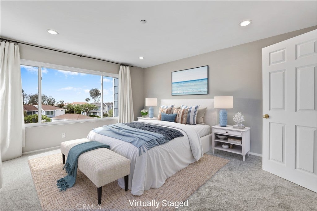 Welcome to 2162 Calle Ola Verde, an exceptional opportunity to own a 3-bedroom home less than a mile from the beach in the highly desirable Faire Harbour community of San Clemente. Positioned as an ideal entry point into coastal living, this two-story residence offers a flexible and functional layout designed for today’s lifestyle. With three full bedrooms, the home easily accommodates remote work, guests, or a growing household; delivering a level of versatility rarely found at this price point. The main level features a bright, open living space with durable wood-look tile flooring and seamless flow between the living room, dining area, and kitchen. Quartz countertops and ample workspace provide a clean, low-maintenance foundation, ready to enjoy as-is or personalize over time. A private outdoor patio extends the living space, perfect for morning coffee or casual evenings at home. Upstairs, the primary suite offers a quiet retreat with peek-a-boo ocean views, a generous walk-in closet, and a remodeled bathroom featuring a walnut vanity and designer tile finishes. Two additional bedrooms are well-sized and filled with natural light, offering flexibility for a variety of living arrangements. Full-size upstairs laundry adds everyday convenience. Beyond the home itself, Faire Harbour offers a lifestyle that’s hard to match; lush greenbelts, a pool and spa, sand volleyball court, and a pet-friendly environment that encourages outdoor living. A detached two-car garage provides valuable storage and parking, a standout feature in this price range. Ideally located near North Beach, The Outlets at San Clemente, downtown dining and shopping, and with easy access to the 5 Freeway, this home blends coastal accessibility with everyday convenience. For buyers looking to stop renting and step into coastal Orange County ownership, this property represents a rare combination of location, space, and long-term potential.