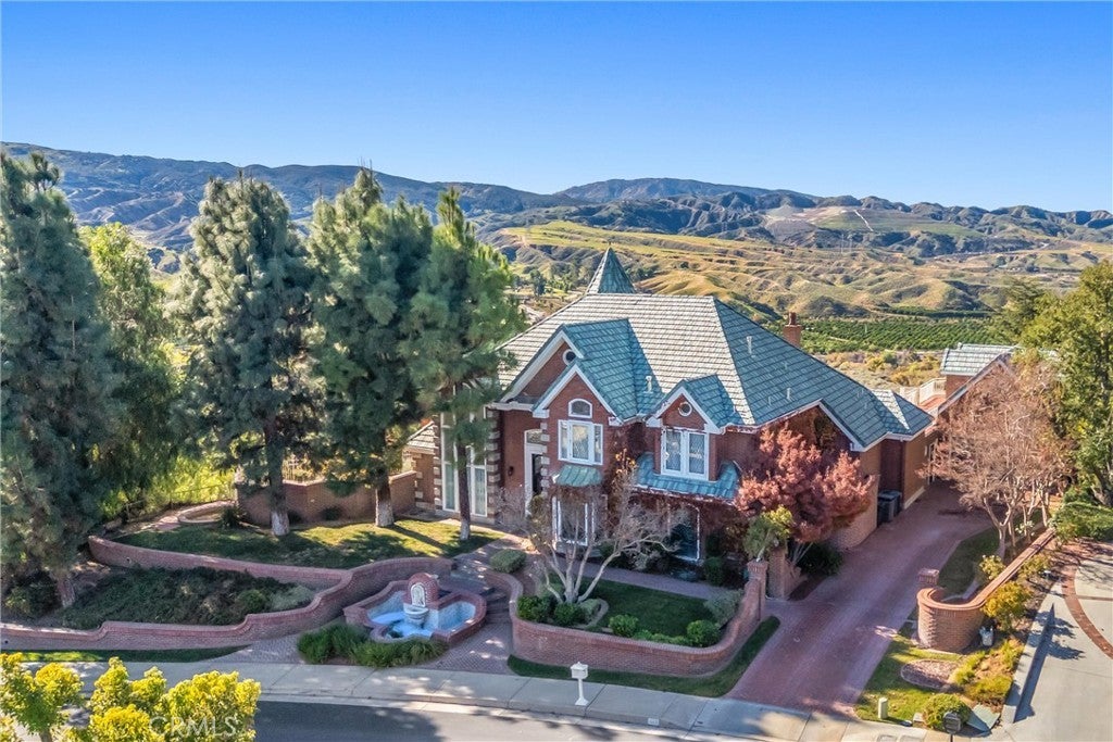 Magnificent home in the exclusive gated community of Smiley Ridge. This beautiful brick residence features classic leaded-glass windows that fill the home with natural light, charming brick planters, a front courtyard fountain, and mature landscaping throughout. Enjoy spectacular panoramic views of San Timoteo Canyon from multiple levels of the home. Inside, the 5-bedroom layout offers excellent flexibility. The main level features wood flooring and two bedrooms, including the primary suite with dual sinks, a separate shower, and a jetted soaking tub. Upstairs are three additional bedrooms plus a spacious family room/loft overlooking the living room below. The bright, functional kitchen includes stainless-steel appliances, a peninsula with a sink, and recessed lighting. A newly remodeled guest house sits above the garage with views of the pool—ideal for guests, multigenerational living, or a private office. The backyard is designed for privacy and enjoyment, bordered by brick walls and wrought-iron fencing.