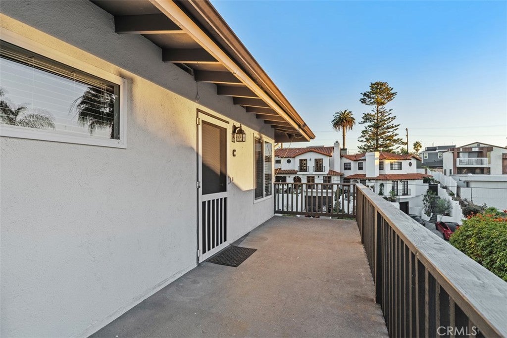 Bright and beautifully updated, this upstairs corner 2-bedroom, 1-bath home spanning over 725 square feet is just a few short blocks from the beach and San Clemente’s coastal trails, with peek-a-boo ocean views and stunning sunset skies. The open floor plan features an updated kitchen with shaker cabinets, quartz counters, plus a brand-new refrigerator and stove. Enjoy luxury vinyl flooring throughout with no carpet anywhere. Both bedrooms feature mirrored closets, along with added hallway and linen storage. Additional perks include a front porch, shared one-car garage, and on-site coin laundry, close to parks, shopping, dining, and the best of beach living.