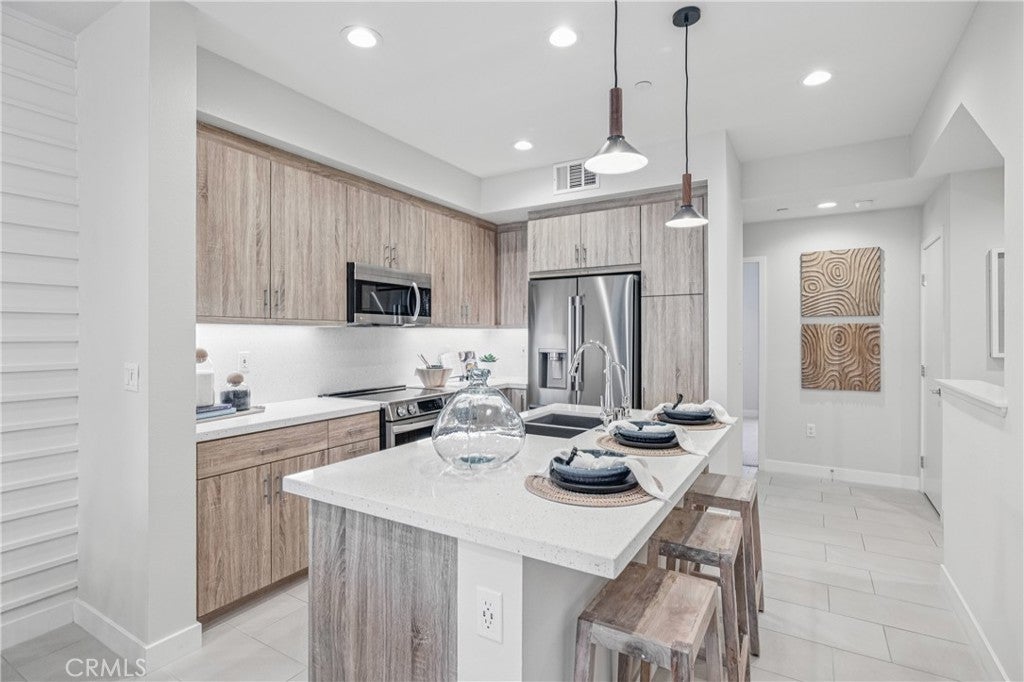 Stunning model home! Eginhouse is a collection of modern, solar-powered townhomes in Artesia. Lot 53 our plan 1 model home features 3 bedrooms and an impressive list of smart technologies - solar panels, learning thermostats, water-saving fixtures, and all-electric appliances. Designer selected features include LG tainless kitchen appliances, flat panel cabinets, quartz kitchen countertops, upgraded flooring package and more. Concessions available for contract this week