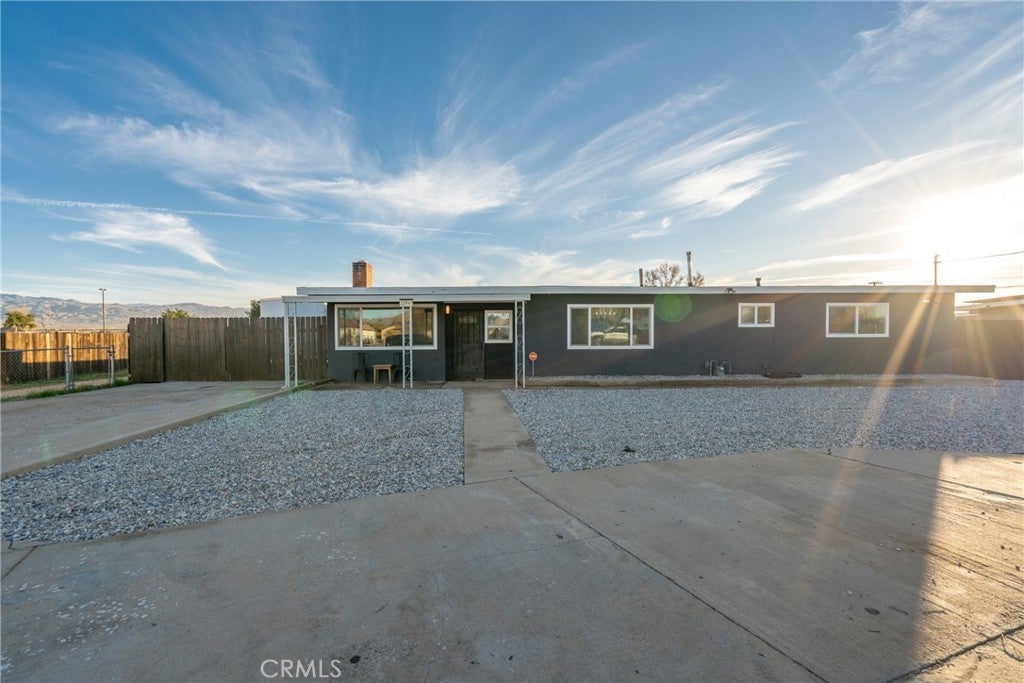 Welcome to 22947 Lucilla Rd, beautifully updated Apple Valley home situated on a generous 21,094 square-foot lot, offering the perfect blend of modern comfort and peaceful desert living. This charming single-story residence features three spacious bedrooms, one upgraded bathroom, and 1,440 square feet of living space designed for both functionality and style. As you step inside, you’ll find an inviting floor plan filled with natural light. The living room welcomes you with a wood-burning fireplace that creates a warm and cozy atmosphere. Recent upgrades such as recessed lighting, quartz countertops, dual pane windows, modern ceiling fans, white shaker cabinetry and refreshed finishes throughout bring a clean and contemporary feel to the home. The kitchen opens seamlessly to the family and dining areas, creating a comfortable layout ideal for everyday living. The nearly half-acre lot with RV access provides endless outdoor possibilities, whether you’re looking to build a workshop, add an ADU, create a garden, or simply enjoy the wide-open desert views. With no HOA, no common walls, and the tranquility of a rural setting, this property offers both space and freedom. This home is connected to public water and features a septic system. It is located within the highly sought after Apple Valley Unified School District. Whether you're a first-time buyer, investor, or simply looking for a peaceful place to call home, 22947 Lucilla Rd offers comfort, value, and room to grow. Don’t miss your chance to make this charming Apple Valley property yours.