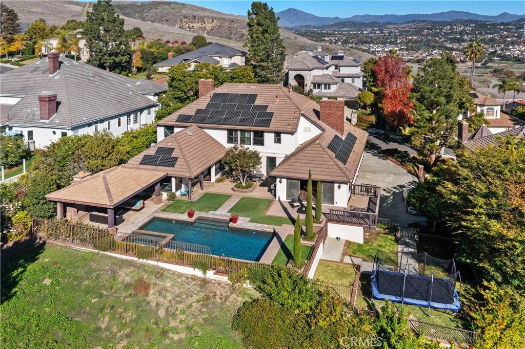 Stunning Stoneridge Estates home offering 4 bedrooms, including a first-floor master suite for single-level living, an office, and a spacious bonus room upstairs—perfect for a media room, playroom, or additional living area. The remodeled kitchen flows seamlessly into the dining and family rooms and provides easy access to the backyard, creating effortless indoor-outdoor living. The home also offers exceptional privacy, 3 fireplaces, a 3-car garage, solar panels, and a large driveway. Step outside to a backyard oasis with a sparkling pool, covered cabana with fireplace and TV, and breathtaking views of the surrounding trees, hills, and open spaces—ideal for entertaining or relaxing. Enjoy the best of San Juan Capistrano with easy access to transportation, the vibrant new River Street Marketplace, exceptional restaurants, shopping, and local attractions. This home combines comfort, style, privacy, and lifestyle in one of the area’s most desirable neighborhoods.