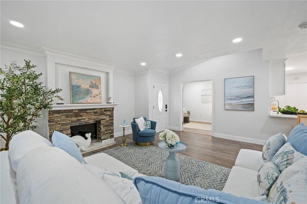 Welcome to this beautifully upgraded pool home, offering a perfect blend of comfort, style, and convenience. Step inside to find upgraded flooring, recessed lighting, and a spacious open-concept kitchen featuring granite counters—ideal for cooking and entertaining. The home includes remodeled bathrooms and a comfortable family room with a cozy fireplace. Enjoy year-round outdoor living with a private in-ground pool equipped with electric, gas, and solar heating, plus a charming gazebo and built-in private barbecue area. The yard is beautifully designed with high-end artificial grass and drought-friendly landscaping for low-maintenance enjoyment. Additional standout features include a drive-through garage and a solar system for energy efficiency. Centrally located and freeway-close, this home is just a 10-minute drive to the beach and sits adjacent to a beautiful park—making it perfect for active lifestyles.