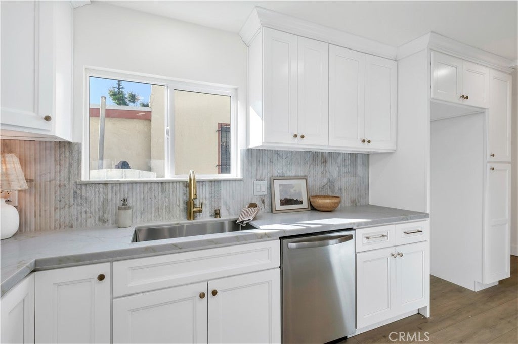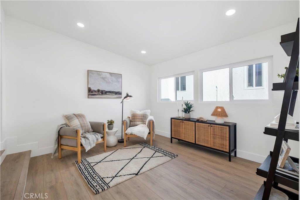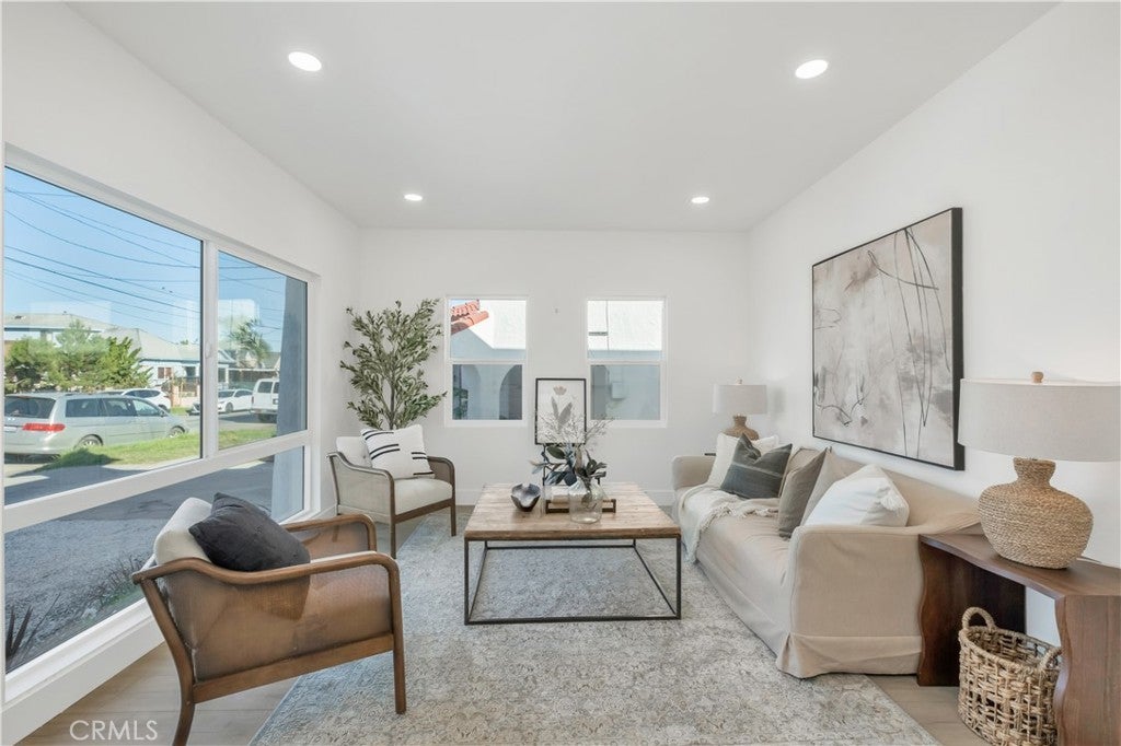 A fresh take on Spanish charm in the heart of Los Angeles. This fully renovated 4-bedroom, 2-bath home blends classic architecture with unexpected modern touches, creating a space that feels both timeless and new. Step into the sunlit living room where crisp white walls and wide-plank flooring set a calm, elevated tone. The oversized front window frames the neighborhood like artwork, while the layout flows effortlessly into a reimagined kitchen that feels custom rather than cookie-cutter. Here you’ll find quartz counters, gorgeous slat backsplash tile, gold fixtures and natural woven accents, and a generous island that doubles as a gathering hub. A step-down bonus living area offers a flexible second lounge—ideal for reading, movie nights, or creating a quiet corner away from the main living space. Both bathrooms were rebuilt with boutique-style finishes: unique jade green tile with matte black fixtures in one, and warm wood cabinetry paired with gold fixtures and textured tile in the other. Each bedroom offers its own airy, restful feel with natural light in every direction. Outside, the property offers a surprisingly spacious backyard with ample room for future outdoor living, play, or entertaining. The classic Spanish façade—with its arched entryway, curved lines, and tile accents—has been thoughtfully refreshed while honoring its original character. Major systems have been upgraded, providing peace of mind rarely found in older Spanish homes. This renovation is more than cosmetic—it’s built for long-term comfort. A distinct, modernized Spanish home that stands out from the rest—move-in ready and designed with intention.