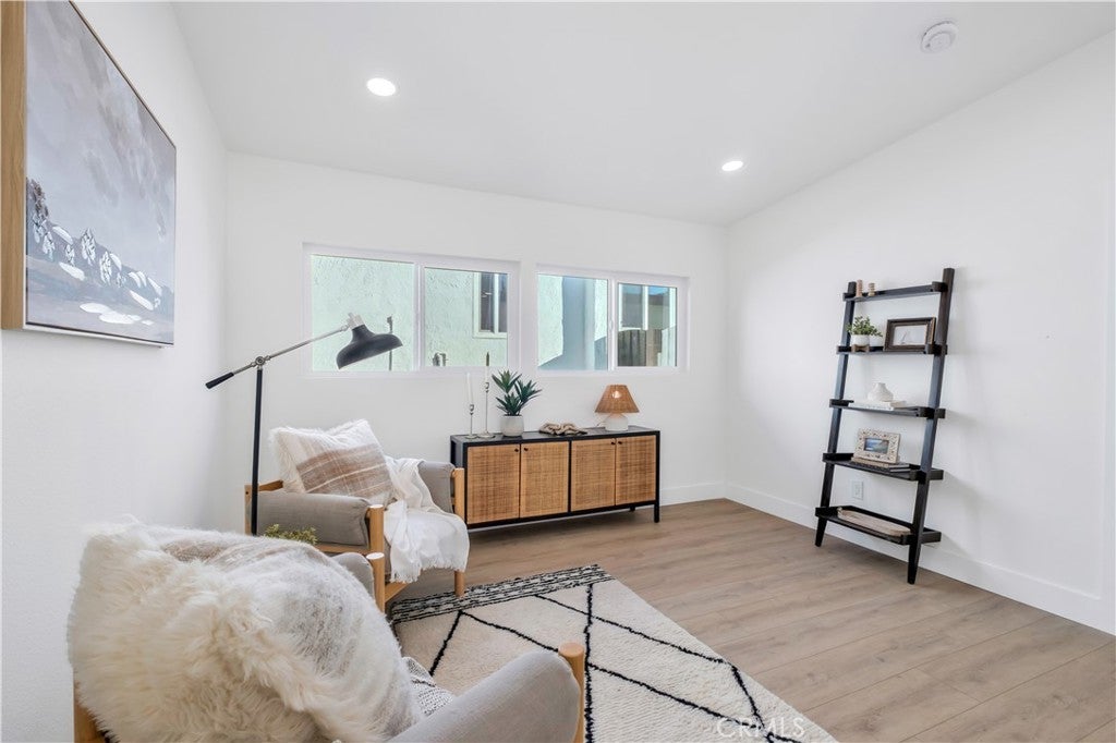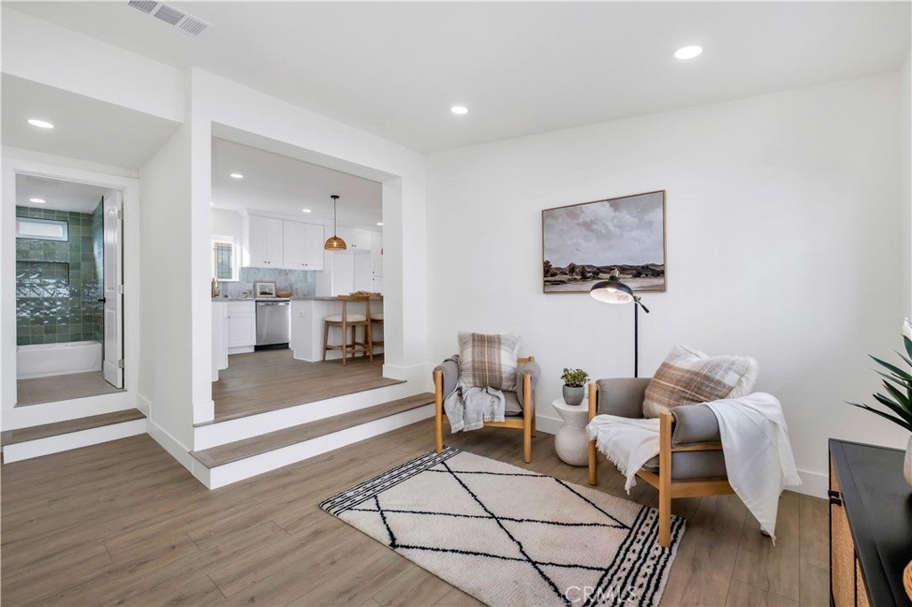 A fresh take on Spanish charm in the heart of Los Angeles. This fully renovated 4-bedroom, 2-bath home blends classic architecture with unexpected modern touches, creating a space that feels both timeless and new. Step into the sunlit living room where crisp white walls and wide-plank flooring set a calm, elevated tone. The oversized front window frames the neighborhood like artwork, while the layout flows effortlessly into a reimagined kitchen that feels custom rather than cookie-cutter. Here you’ll find quartz counters, gorgeous slat backsplash tile, gold fixtures and natural woven accents, and a generous island that doubles as a gathering hub. A step-down bonus living area offers a flexible second lounge—ideal for reading, movie nights, or creating a quiet corner away from the main living space. Both bathrooms were rebuilt with boutique-style finishes: unique jade green tile with matte black fixtures in one, and warm wood cabinetry paired with gold fixtures and textured tile in the other. Each bedroom offers its own airy, restful feel with natural light in every direction. Outside, the property offers a surprisingly spacious backyard with ample room for future outdoor living, play, or entertaining. The classic Spanish façade—with its arched entryway, curved lines, and tile accents—has been thoughtfully refreshed while honoring its original character. Major systems have been upgraded, providing peace of mind rarely found in older Spanish homes. This renovation is more than cosmetic—it’s built for long-term comfort. A distinct, modernized Spanish home that stands out from the rest—move-in ready and designed with intention.