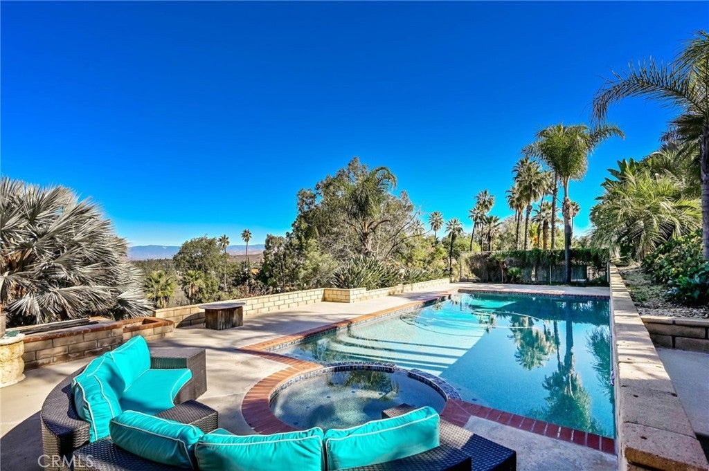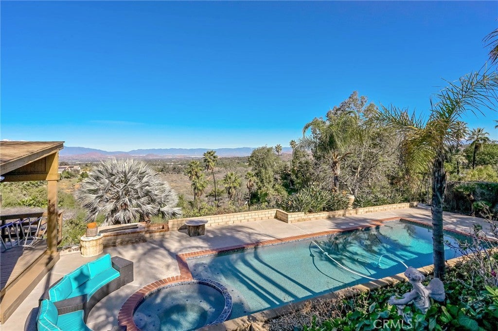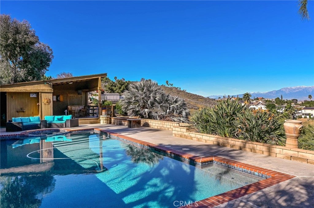 SPECTACULAR CITY LIGHTS & MOUNTAIN VIEWS | Private Single-Story Luxury Estate. Discover unparalleled privacy and breathtaking views in this magnificent single-story custom estate, located in a highly secluded area. Spanning 3,792 square feet of living space, this home offers an exclusive retreat with 5 bedrooms and 3 and 1/2 bathrooms, perfect for luxurious family living and entertaining. Perched to deliver dramatic city lights and mountain panoramas from multiple vantage points. The single-story layout ensures effortless flow and accessibility, blending seamlessly with the serene, expansive outdoor environment. The primary retreat is a true sanctuary, featuring a dedicated fireplace for cozy evenings and an open-concept design that maximizes space and natural light. The expansive floor plan includes vaulted ceilings throughout and is designed for both large-scale entertaining and comfortable day-to-day living, offering spacious rooms throughout. At the heart of the home is the expansive Entertainer's Kitchen, featuring massive center island and an open connection to the living areas, making hosting effortless. Step outside to your private resort living. The backyard is an entertainer's dream, centered around a sparkling salt water pool and spa, complemented by a Cabana and deck with a view, perfect for shaded lounging, poolside entertaining, or a dedicated outdoor changing space. Whether you are enjoying a morning coffee with a mountain backdrop or hosting an evening gathering under the shimmering city lights, this outdoor space is a year-round paradise. This estate offers a dedicated space for RV Parking, ensuring your vehicles and toys are accommodated securely on the property. This is more than just a home; it is a private, single-story sanctuary offering the ultimate blend of comfort, luxury, and mesmerizing views, with the practical amenities you desire.