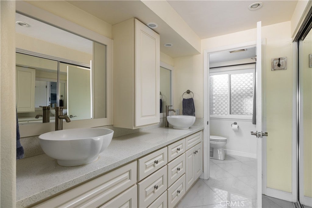 Welcome to 27802 Paguera, a stunning lakefront condo in the sought after Mallorcas gated community, where tranquil Mission Viejo Lake living meets effortless luxury. Perched to capture spectacular lake views from nearly every room, this immaculate residence invites you into a bright, light-filled interior that reflects coastal elegance and timeless comfort. Step inside to discover pristine white marble floors flowing throughout, neutral paint tones that enhance the airy open floorplan, and recessed lighting that beautifully illuminates every space. The heart of the home is the brand-new, highly upgraded kitchen. A chef’s dream with sleek countertops, contemporary cabinetry, stainless appliances, and panoramic water vistas that turn everyday meals into memorable moments. Imagine sipping morning coffee or entertaining friends while gazing over the shimmering lake and rolling hills beyond, the view here is nothing short of breathtaking. Floor-to-ceiling dual-pane windows and sliding glass doors blur the line between indoor comfort and outdoor beauty, allowing natural light to fill the living and dining areas while framing postcard-like scenes day after day. Both bathrooms have been thoughtfully upgraded with modern finishes and stylish touches that complement the home’s bright, coastal aesthetic. The primary suite offers serene retreat-like comfort with expansive vistas that set the tone for peaceful evenings and restful mornings. The secondary bedroom, equally bright and inviting, provides versatility for guests, home office use, or whatever lifestyle best suits your needs. Living in the Mallorcas community means enjoying the very best of Mission Viejo Lake living. From leisurely walks along scenic pathways to kayaking, paddleboarding, and lakeside picnics, you’re embraced by calm waters and outdoor recreation at every turn. Top-rated schools, shopping, dining, and easy freeway access are all just moments away making this location as convenient as it is captivating. Whether you’re drawn to beautiful design, premier lakefront lifestyle, or unobstructed views that greet you every day, 27802 Paguera is more than a condo, it’s your personal gateway to lakeside living at its finest.