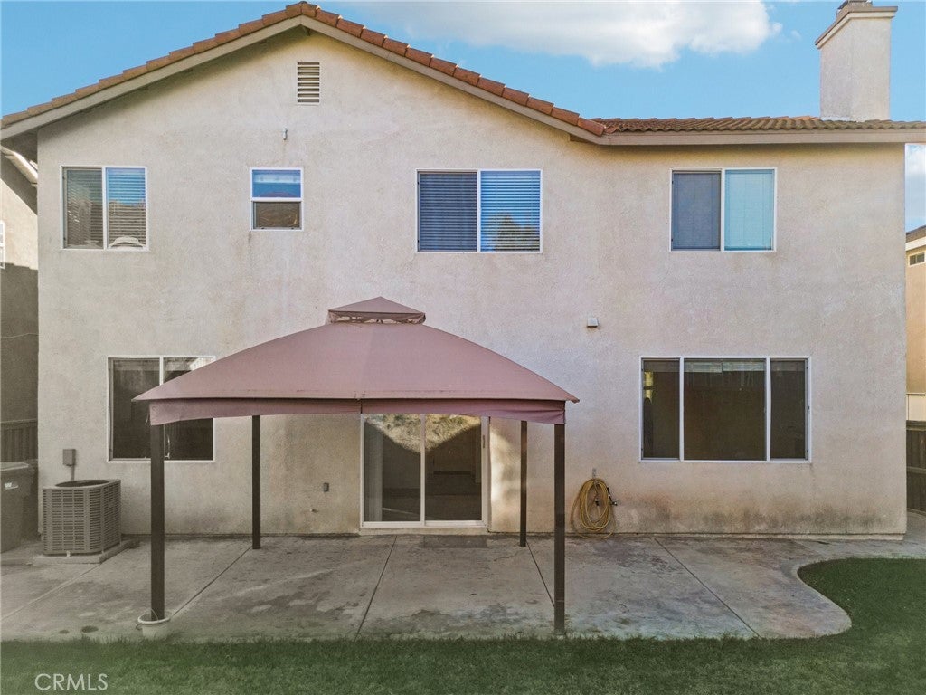 Turn Key 3 bed, 2.5 bath home is ready to be made yours and is located in the Rancho Bella Vista community! Offering great curb appeal, an attached 2-car garage, a covered porch area to enjoy, and leased Solar Panels. Also, the interior is spacious with almost 2,000 sqft of living space, high ceilings, recessed lights, carpet, and tile flooring. Enter into the formal living room and dining room which flows into the family room with fireplace and sits just off of the kitchen with granite countertops, on-trend dual-color white and blue cabinetry, with center island, and a pantry. All 3 bedrooms are located on the 2nd floor including a bonus loft area. The large primary suite features a private ensuite with dual sinks, a soaking tub, and a separate shower. There is also a full-size hall bathroom for the 2 secondary bedrooms, and a half bathroom for guests. Enjoy the fully fenced backyard with grass and concrete areas, a gazebo to relax under, and plenty of space to make your own! Conveniently located near schools, trails, shopping, dining, and not far from the 215 and 15 Fwys! Schedule your tour today!