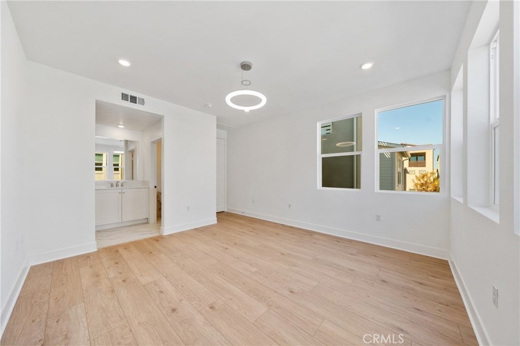 This beautiful brand-new and maintained detached home offers 4 bedrooms and 3.5 bathrooms with 2,132 square feet of living space. The property sits in a quiet interior location of Irvine, not in the T section and not near major streets. A wide and extended front courtyard provides a welcoming entrance, and the classic 2+1 layout creates clear separation between living areas and private spaces. The interior includes approximately forty thousand dollars in designer upgrades. Flooring and tile were upgraded throughout the home, and six modern LED pendant lights were added to enhance the clean and contemporary style. The first floor features bright and open living and dining areas. The kitchen includes an Italian glass tile backsplash along with GE dishwasher and refrigerator. The second floor includes a bright primary suite with a crystal LED pendant light, dual vanities, a large walk-in shower, and a spacious walk-in closet with a window. The closet has upgraded double-sided mirrored doors. Two additional secondary bedrooms are also located on this level, along with a laundry room equipped with newly purchased washer and dryer. The third floor provides a spacious fourth bedroom, a full bathroom and a bright loft with multiple windows. The loft works well as a study, entertainment area, additional family room or an optional fifth guest space. A large view deck offers comfortable outdoor space suitable for seating, BBQ gatherings or relaxation. The garage is equipped with a Tesla battery system and an RV charging outlet, offering added convenience and energy efficiency. Residents have access to Luna Park and all eight Great Park community amenities, including pools, clubhouses, playgrounds and sports facilities. The location is convenient with a three-minute drive to Wild Rivers, a seven-minute drive to the Orange Balloon at Great Park and about ten minutes to Irvine Station and Irvine Spectrum. This home is in excellent condition, well located and easy to show.