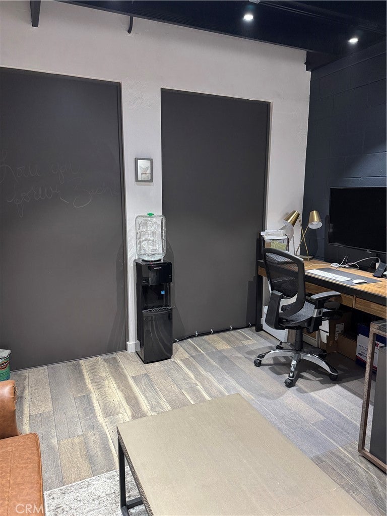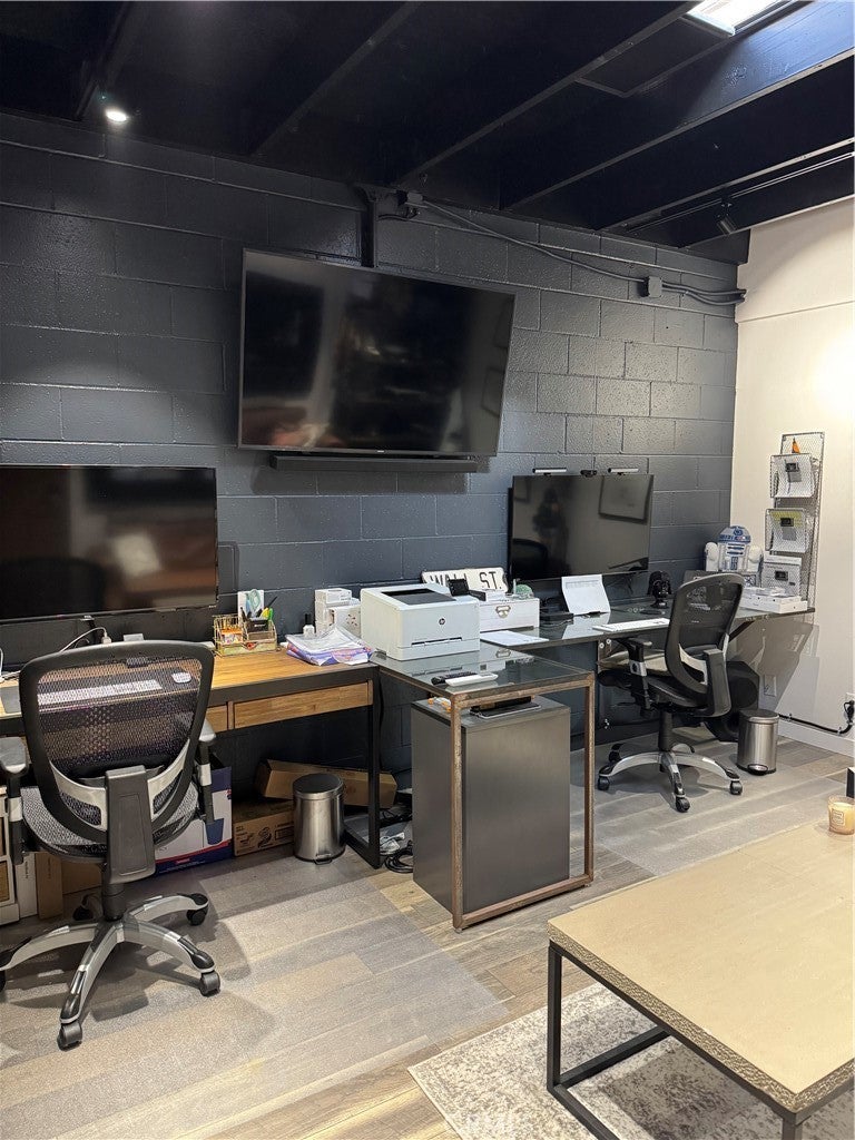 Beautifully designed 200 sq ft office suite featuring industrial-modern finishes, AC, and a bright skylight. This fully furnished space includes two desks, a couch, and a coffee table—perfect for immediate move-in. Unique touches like a chalkboard accent wall add character and functionality. Enjoy a private entrance along with access to a communal conference room for meetings or client use. All utilities and high-speed internet are included, making this a simple, turnkey solution for any professional.