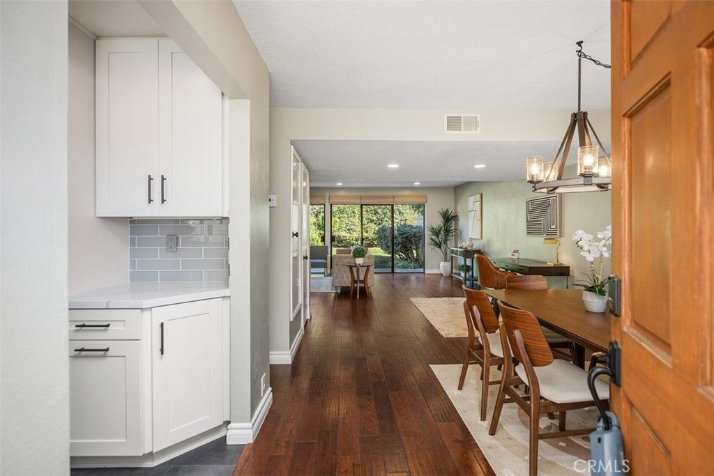 Located in Southeast San Clemente is the beautiful community of Presidential Heights I. Minutes away from the San Clemente Municipal Golf Course and world renowned Beaches, this tastefully updated 3 Bedroom attached home is ready for a new owner. You'll first experience the private courtyard, perfect for BBQ's and relaxing. Then enter into the open dining and great room with wood type flooring and views into the private common area backyard. Kitchen is beautifully updated with new cabinets, flooring, appliances and countertops. The upstairs has 3 roomy, carpeted Bedrooms, including the lovely Primary bedroom with a hillside greenbelt balcony view. The large 2 car garage provides a great area for storage. Steps away is the ocean view complex pool with spa. A prime location for commuting north or south on "I-5 Freeway". Only minutes to the shops of Del Mar, fabulous restaurants and the San Clemente pier.