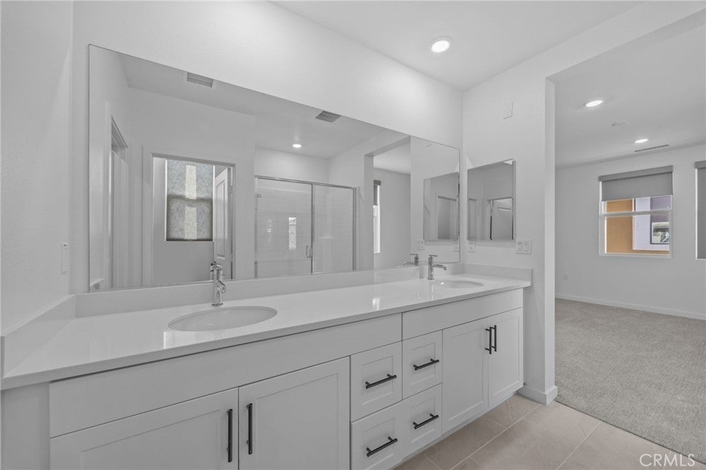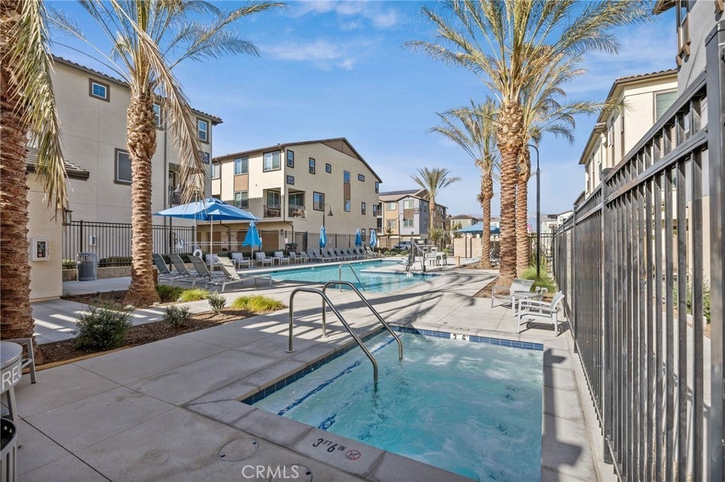 Be the first to live in this brand-new, spacious 3 bedroom, 2 bath condo offering over 1,600sf of light-filled living space with an open-concept floor plan. The kitchen features a large center island, upgraded quartz countertops with full backsplash, walk-in pantry, ample cabinetry, and brand-new stainless steel appliances including refrigerator. Enjoy the balcony off the living area, vinyl flooring in the main living spaces, carpeted bedrooms with upgraded blackout shades, and in-unit laundry with full-size washer and dryer. Both bathrooms are upgraded with modern shower doors and have dual sink vanities. Additional highlights include solar, Smart Home technology with phone-app access to the garage, front door, and thermostat, a 100+ sf private storage space, shared bike storage, pool views, and a two-car tandem garage. Residents enjoy resort-style amenities including three pools (including a lap pool), spa, BBQ area, expansive fitness center, clubhouse, and park, all within a brand-new community conveniently located near shopping and dining.