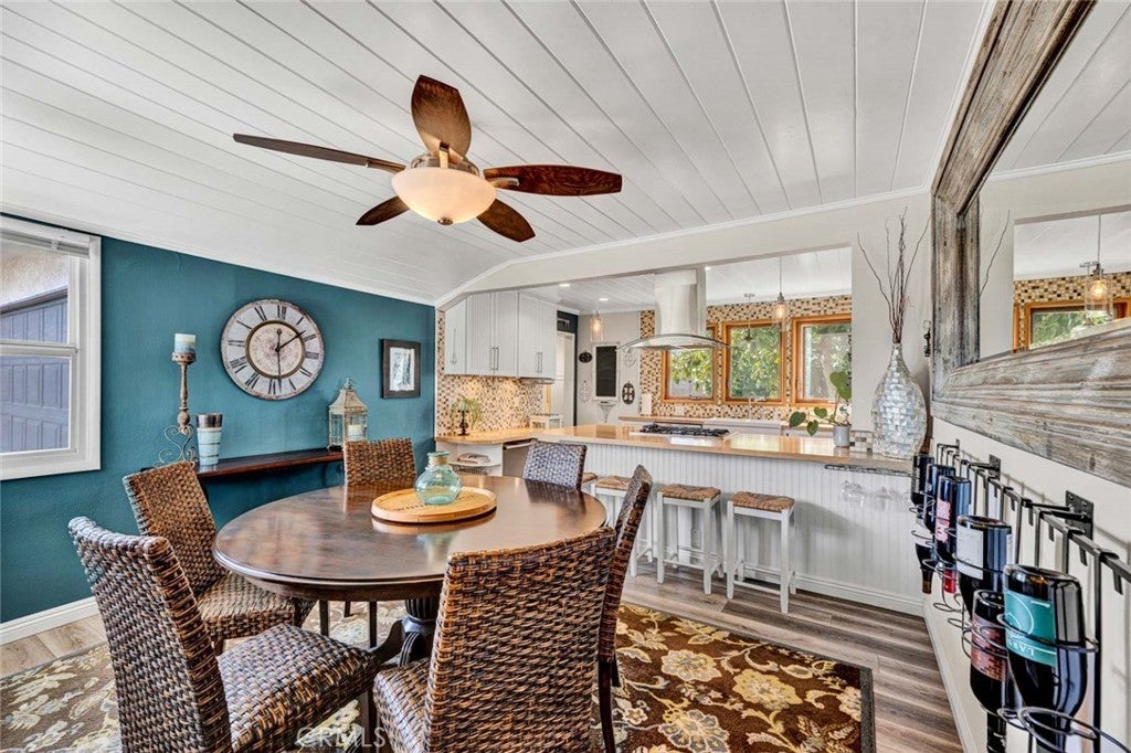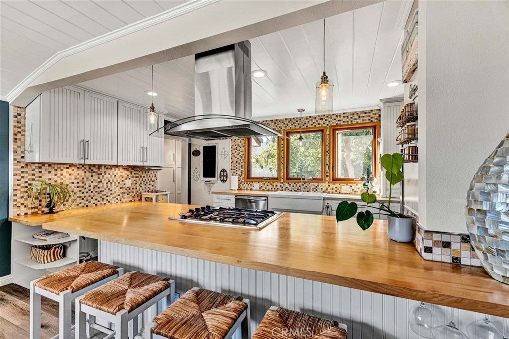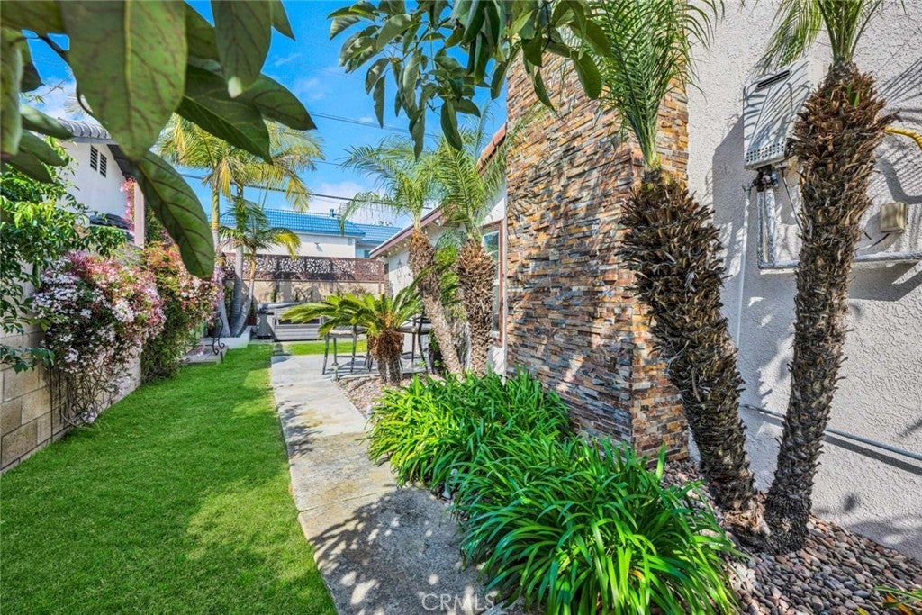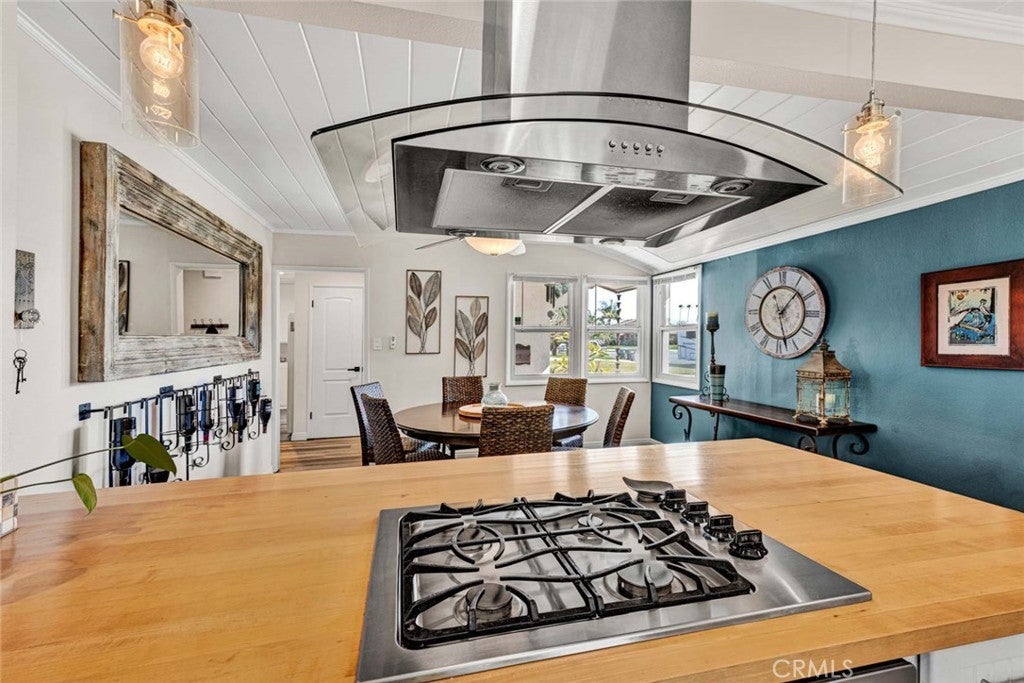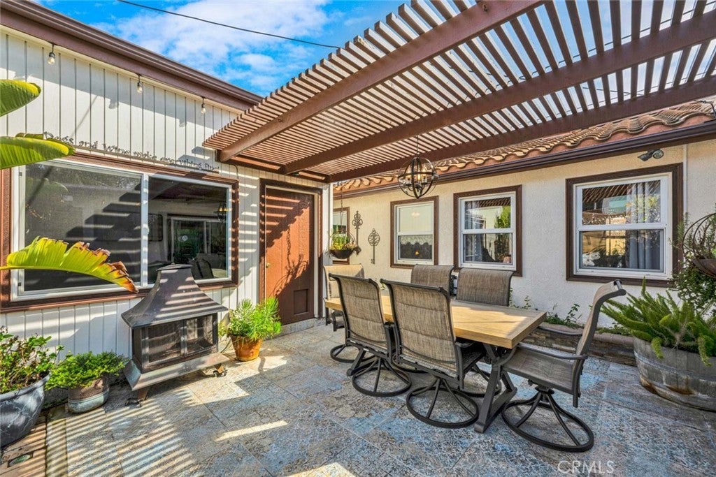 Step inside this beautifully updated home that blends classic charm with thoughtful modern upgrades and tasteful design. A custom iron front door with integrated screen sets the tone and you will appreciate every attention to detail. Newer LVT flooring, interior paint, updated baseboards, newer interior doors, and stylish fixtures. The remodeled kitchen is a true showstopper, featuring a neutral backsplash, beadboard cabinetry, farmhouse sink, Boos butcher block countertops, shiplap ceiling, recessed lighting, pull-out pantry, and drawers with soft-close functionality. Newer appliances include a Frigidaire stove, dishwasher and microwave. Breakfast bar with seating for four opens seamlessly to a dining room enhanced by shiplap ceiling and a Hampton Bay ceiling fan. The living room is bright and welcoming with a skylight and the focal point is the striking stone fireplace and hearth with both gas and wood-burning options. Dimmer switches in both the living room and kitchen allow for customized ambiance. Tastefully updated bathrooms. One stylish bath features newer tile floors and a rock floor shower for a spa-like feel. A highlight is the additional approx 300 sq ft bonus room offering versatile space ideal for home office, gym or relaxing retreat. Major system upgrades provide peace of mind. New plumbing was professionally relocated from the slab to the ceiling, newer electrical panel, tankless water heater, and energy-efficient Milgard double-pane casement windows in the kitchen and Jensen windows throughout. Car enthusiasts and hobbyists will appreciate the exceptional parking and storage options, including a spacious approximately 450 sq ft garage with 10-foot ceilings, and a 7’7” door. A second 11’ x 19’ garage with full-size laundry, and a separate covered carport. The oversized driveway accommodates multiple vehicles and an R.V. up to 35 feet. Outdoor living is elevated with two separate patios featuring classic Spanish tile floors. A private hot tub, two fountains, and a 40-inch TV create an inviting space idea for casual entertaining and enjoying the coastal living year round. Mature landscaping includes an avocado tree, fragrant plumeria and jasmine. This property offers value, versatility and opportunity for buyers, investors, and multi-generational families looking for ADU potential. Boasting an excellent walkability score, this location offers nearby conveniences like shopping, dining, Central Park and Library. Quick drive or bike to the beach.