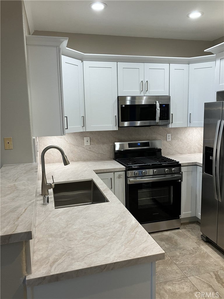 Renovated 3-Bedroom Condo with Modern Finishes: This beautifully renovated 3-bedroom, 2-bath condo in Rancho Santa Margarita offers a modern, upscale living experience with high-quality finishes throughout. It has 1-car direct access garage, 1 reserved parking, patio/balcony, and fireplace. Move-in-ready home. Interior Highlights: -Luxury LVP flooring in main living areas for a warm, contemporary look -Brand-new kitchen featuring white shaker cabinets, quartz countertops, and backsplash -New stainless steel appliances including microwave, dishwasher, and range/oven -Sleek undermount sink with modern pull-down faucet -Fresh neutral paint and crown molding throughout -Updated bathrooms with new shaker vanities, quartz countertops, modern fixtures, and updated lighting -Spacious double-sink primary bathroom vanity with ample storage Bright & Open Living Spaces: The living area features high ceilings, abundant natural light, and direct access to a private patio, creating a welcoming space for relaxing or entertaining. Neutral tones and modern finishes make the home easy to furnish and personalize. Community & Location: Located in a quiet, well-maintained community Access to Rancho Santa Margarita amenities including parks, pools, trails, and shopping Conveniently close to schools, dining, and major commuter routes