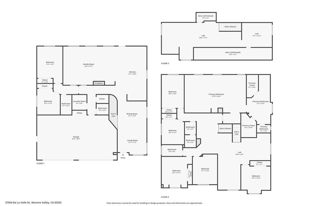 Set behind the gates of one of Moreno Valley’s most desirable communities, this impressive three story residence offers space, separation, and flexibility designed for today’s modern multi-generational lifestyle. With eight bedrooms and a thoughtfully designed layout, this home provides rare versatility for extended family, guests, or work from home living.The first level features a private living wing with two bedrooms, 1.5 bathrooms, laundry, and direct garage access, creating an ideal setup for in laws, guests, or a dedicated home office suite. Freshly painted with brand new carpet, the home is truly move in ready. The open concept kitchen and family room create the heart of the home, perfect for entertaining or relaxing around the fireplace. The second level hosts a primary retreat featuring his and hers vanities, his and hers walk-in closet spaces, and an ensuite bath, offering a true dual-suite experience rarely found in this price range. Additional bedrooms and a large central loft provide flexibility for play, study, or additional living space. The third level adds even more versatility with multiple loft areas, ideal for a home gym, media room, studio, or long term storage. The private backyard features a low maintenance design with lush grass space for entertaining, play, or weekend gatherings, while the four car attached garage offers exceptional parking and storage. Ideally located near parks, Lake Perris, hiking and biking trails, major medical centers, and with convenient access to the 60 and 215 freeways, this home offers the perfect balance of privacy, lifestyle, and connectivity in a beautiful, up and coming Moreno Valley community.
