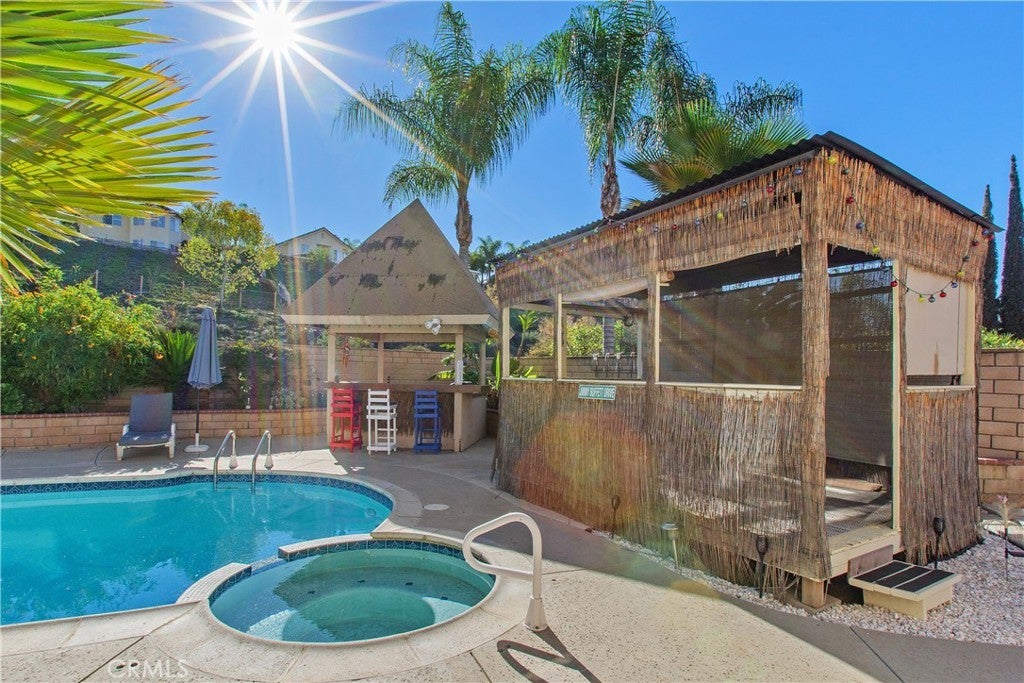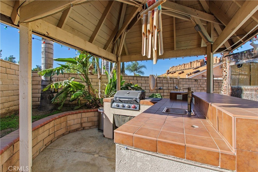 Welcome to this beautifully maintained 4-bedroom, 3-bath home offering a comfortable layout designed for both everyday living and entertaining. Thoughtful design and abundant natural light create a welcoming atmosphere throughout. The well-appointed kitchen features granite countertops and backsplash, ample cabinetry, and a large pantry closet. The layout flows seamlessly into the breakfast nook and family room, where a cozy fireplace adds warmth and charm for cooler evenings. The spacious primary suite offers a peaceful retreat with a soaking tub, separate shower, dual vanities, and serene hillside views. Additional highlights include a dedicated laundry room with convenient access to the 3-car garage. Step outside to enjoy a backyard built for Southern California living, complete with a built-in cabana featuring a sink with running water, BBQ, refrigerator, and a gas fire pit—perfect for gatherings and outdoor entertaining. The private outdoor space is completed by a sparkling pool, making this home ideal for relaxing and hosting year-round. Ideally located with easy freeway access, this low-maintenance Wildomar home blends comfort, functionality, and lifestyle.