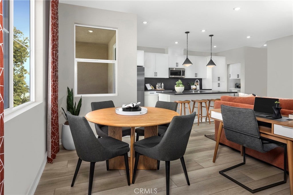 New construction home by Risewell Homes at Eave in Ontario. Great starter home that lives like a single story, with an attractive price and premium location, close to community parks/paseos/amenities, with an exterior deck off the main living area. Interior finishes include a washer/dryer/fridge, sleek Samsung appliance package, LVP/carpet/tile flooring at select areas, Quartz counters. Once upstairs from the formal entry/garage, efficient floorplan offers an expansive Primary Bedroom/Bath plus Great Room/Kitchen/Dining + Powder Bath. The resort-style pool and lounge area (see photos) highlight this contemporary neighborhood that's tucked away from main thoroughfares yet so close to New Haven Marketplace, I-15 and 60 corridors, The Station at Eastvale, and a variety of other shopping/dining/entertainment options. Seller concessions available. Estimated April Move In.
