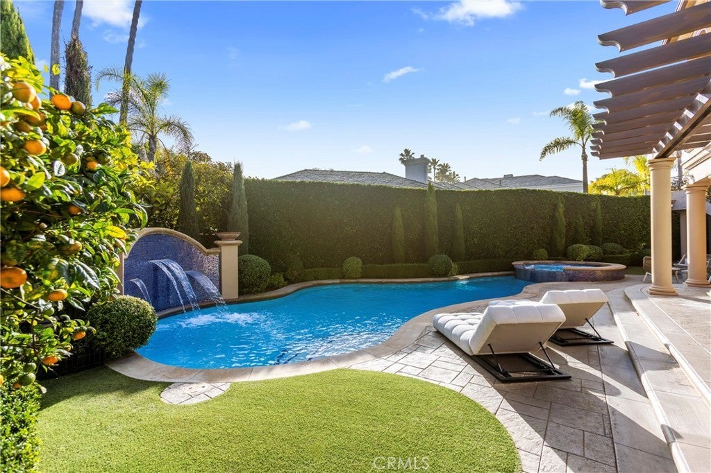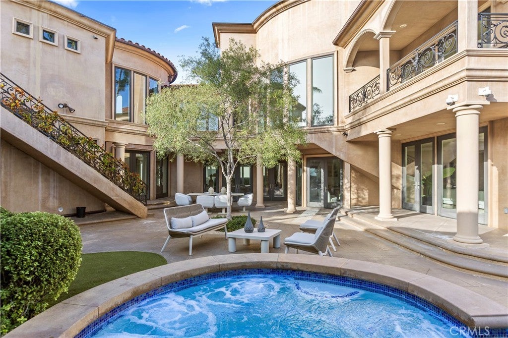 Truly, an outstanding opportunity for this meticulously maintained Mediterranean style custom residence located within the highly prestigious & coveted “Oceanfront,” 24 hr. guard gated community of Ritz Cove. This impeccable 7200 sqft residence contains 5 bedrooms, 8 bathrooms, a two-story entry foyer showcasing a beautiful circular staircase, 3 fireplaces, an in-home theater, a 3rd story viewing deck with “dumb waiter” access. The main floor of the residence has impeccable "Crema Marfil' marble flooring throughout & offers a main floor office, 2 additional bathrooms, a main floor ensuite bedroom, generous breakfast/ family dining, & an outstanding family room with custom built-ins & fireplace. Contiguous to the family room a stunning bar area with wine storage & direct access to the ‘Resort Style” backyard with BBQ area, spa & pool inclusive of water feature, gas fire pots & outdoor staircase to the 2nd floor of the home!! This floor plan is absolutely “open and spacious” as well as “light & bright!” The Center Island, gourmet kitchen, features custom cabinetry, counters & back splashes of Marmot Belgia Calcutta Marble, 6 burner Viking range, subzero refrigerator/freezer, 3 dishwashers, & built in coffee maker! The gracious Primary Suite contains a sitting area, dual sided fireplace, coffee bar area with sink & refrigerator, 2 exceptional walk-in closets with custom cabinetry, a luxurious Primary bath suite with "Iceberg Blue Quartzite' multiple head steam shower, soaking tub & 3 vanity areas. All ancillary bedrooms offer oversize walk-in closets. Additional upgrades include an upstairs laundry room with 2 washers & dryer sets & built in storage, central AC & vacuum system, newer water softening system & water heater, Home Guardian Security Cameras, RING doorbell & cameras, Control 4 Smart Home System for TVs, heating, lighting, & music! This “end of cul-de-sac” residence features a “gated auto driveway,” finished oversize 3 car garage with an abundance of storage options. The manicured grounds are extremely private & an entertainer’s dream. The Ritz Cove community provides a “private gated” entrance to the walking/bicycle path along the Pacific Ocean including direct beach access! Located contiguous to the Ritz Carlton Resort & minutes away from Dana point Harbor & Lantern District featuring numerous dining & shopping options. This is absolutely “a must see “property for any Purchaser in this price range & a 10 out of 10!
