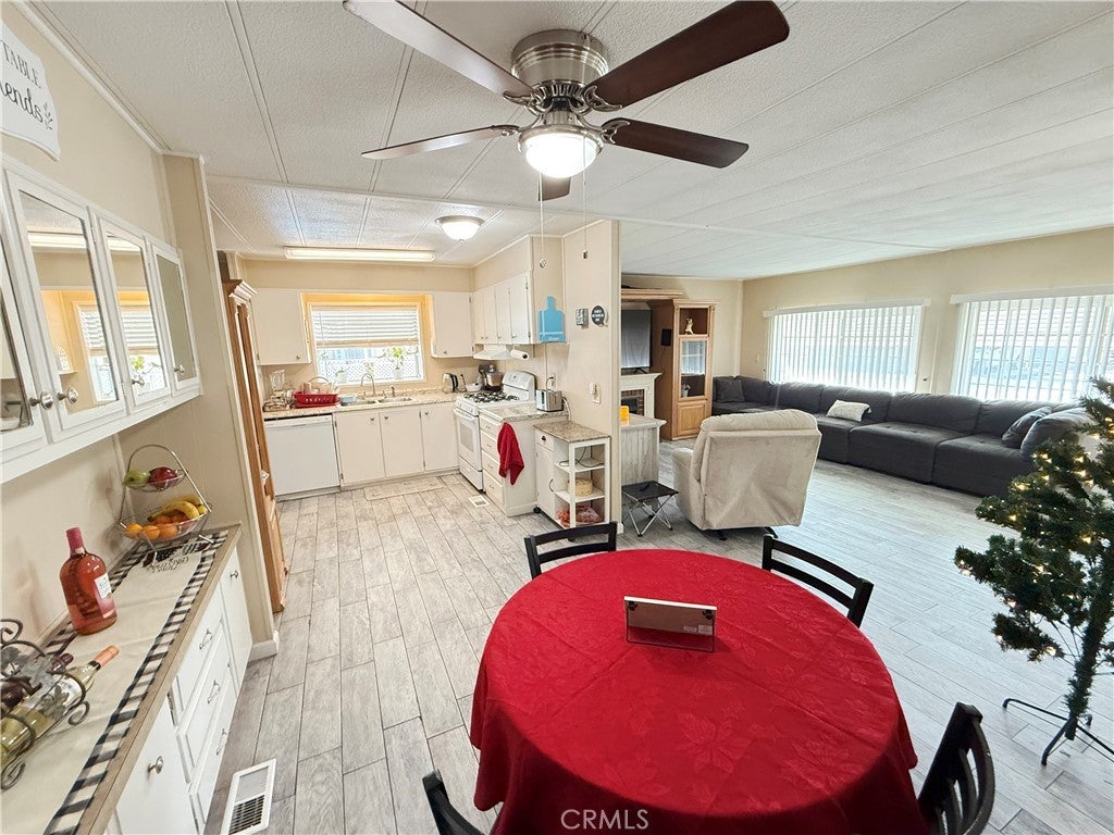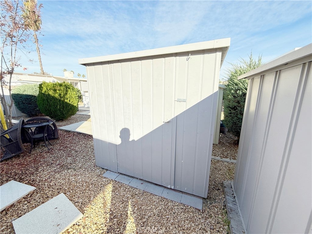 Located inside the gated Villa Del Sol Mobile Estates, this upgraded 2-bedroom, 2-bath home offers a clean, comfortable lifestyle in one of Hemet’s well-maintained manufactured communities. The park itself is a major value-add, featuring a community clubhouse, pool, spa, and recreational areas — perfect for social gatherings, relaxing afternoons, or staying active without leaving the neighborhood. Pride of ownership shows throughout the community, with controlled access and a peaceful, residential feel. Inside the home, durable tile flooring with a wood-look finish pairs well with a bright, open layout and built-in storage throughout. The kitchen comes fully equipped with refrigerator, washer, and dryer, patio furniture making this a true move-in-ready opportunity. A newer central A/C and heating system ensures year-round comfort, while sliding doors open to a private side patio ideal for outdoor dining or quiet mornings. A newly added storage shed provides valuable extra space — a practical upgrade that enhances everyday living. Conveniently located near shopping, dining, medical services, and everyday essentials, with easy access to local grocery stores, retail centers, and major roads. Nearby parks, schools within the Hemet Unified School District, and community services make this an ideal full-time residence or downsizing option. If you’re looking for an affordable home that offers amenities, upgrades, and a well-kept community, this one delivers real value without the project list.