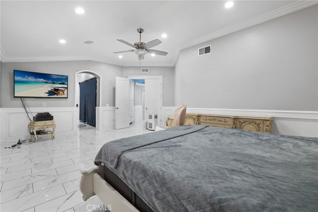 This impressive 4-bed, 3-bath residence in Archibald Ranch delivers 3,157 square feet of expansive, designer-finished living space, where architectural detail and luxury materials come together seamlessly. From custom wall etchings to porcelain and marble finishes, every inch of this home reflects intentional craftsmanship in classic Italian design, creating a timeless and luxurious ambiance with NO HOA! Truly one of a kind, the expansive floor plan flows seamlessly and is perfect for both everyday living and grand entertaining. A standout feature is the oversized loft/game room, a premium builder upgrade that replaced two additional bedrooms—providing a versatile, open space ideal for a media room, gym, entertainment lounge, or home office. The primary suite features dual walk-in closets and a spa-like bathroom that complements the home’s refined aesthetic. Additional bedrooms are generously sized, and all three bathrooms reflect the same level of thoughtful design and quality. Completing the home is a 3-car garage, offering ample storage and convenience. Located close to shopping, dining, and major commuter routes, this exceptional property combines luxury finishes and expansive spaces for an opportunity not to be missed.